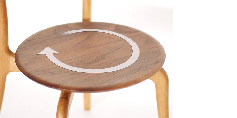 座面のみが回転します。滑らかに削り込まれた座面にはノンスリップ塗装を施していますので、不快な滑りがありません。