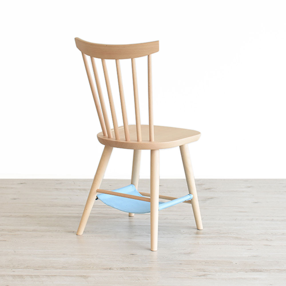 ハンモックが付いた「ハンナチェア」板座 ブナ材 白木塗装