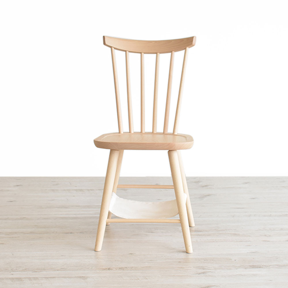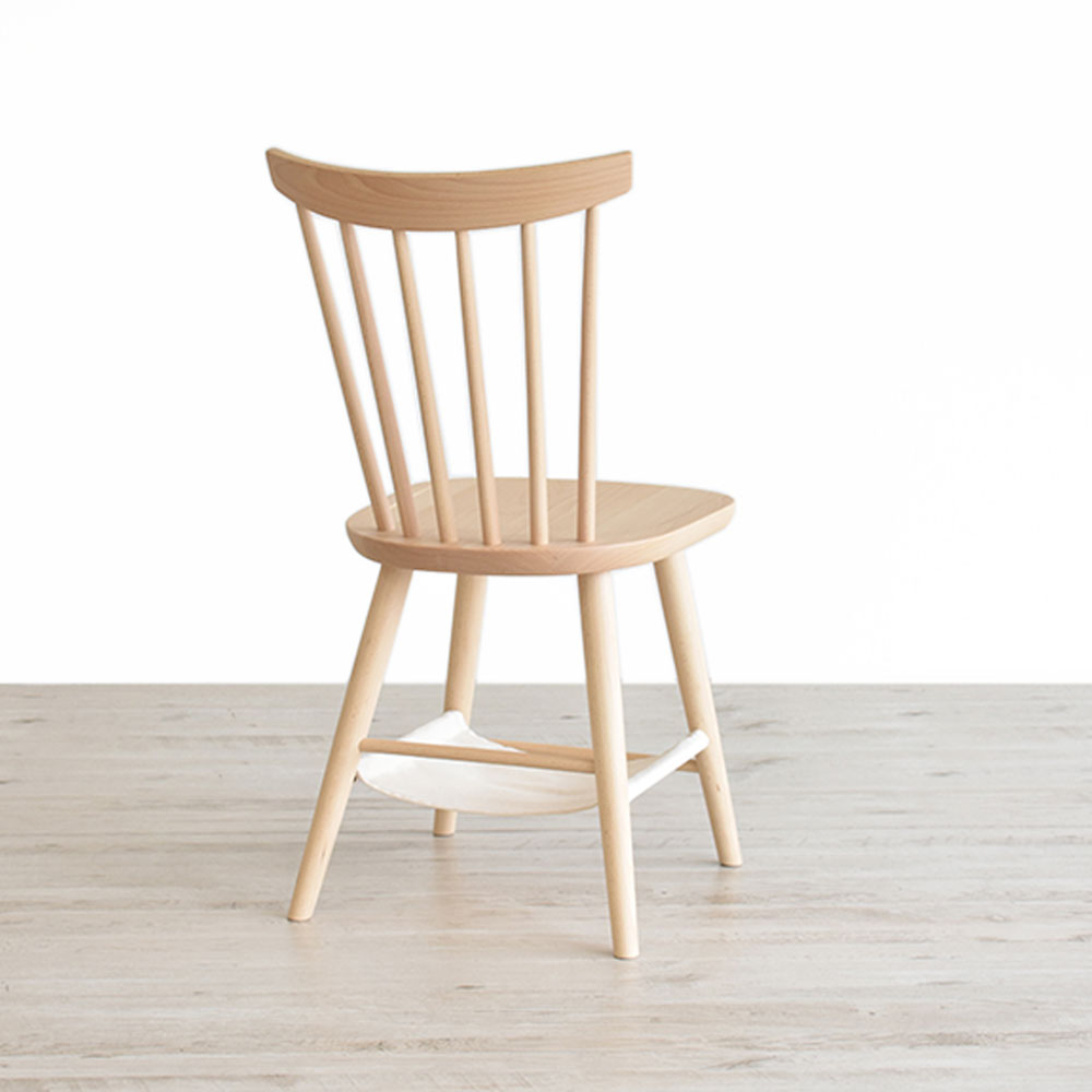 ブナ材に白木塗装を施した様々なシチュエーションでの使用が可能なアイテムです。曲げ木ならではの美しいフォルムと、軽量でありながら丈夫であることが特徴です。