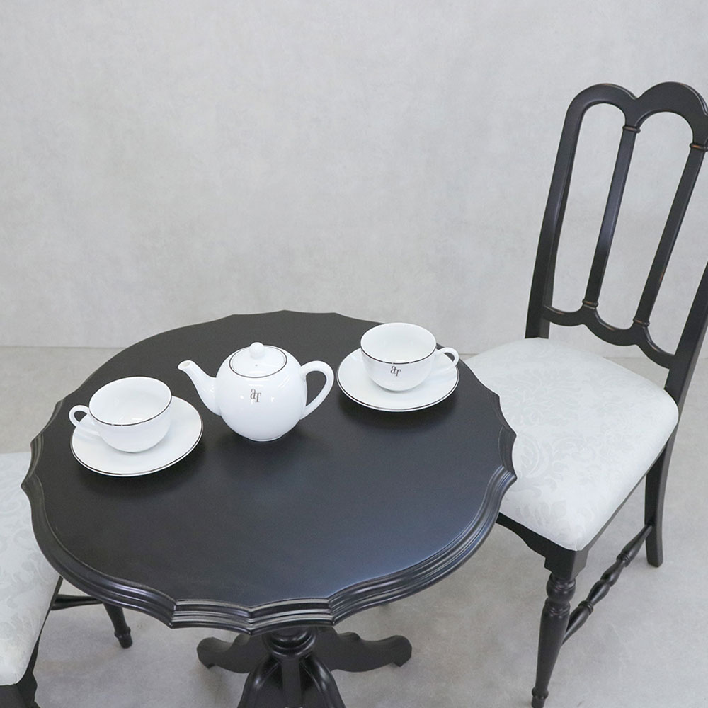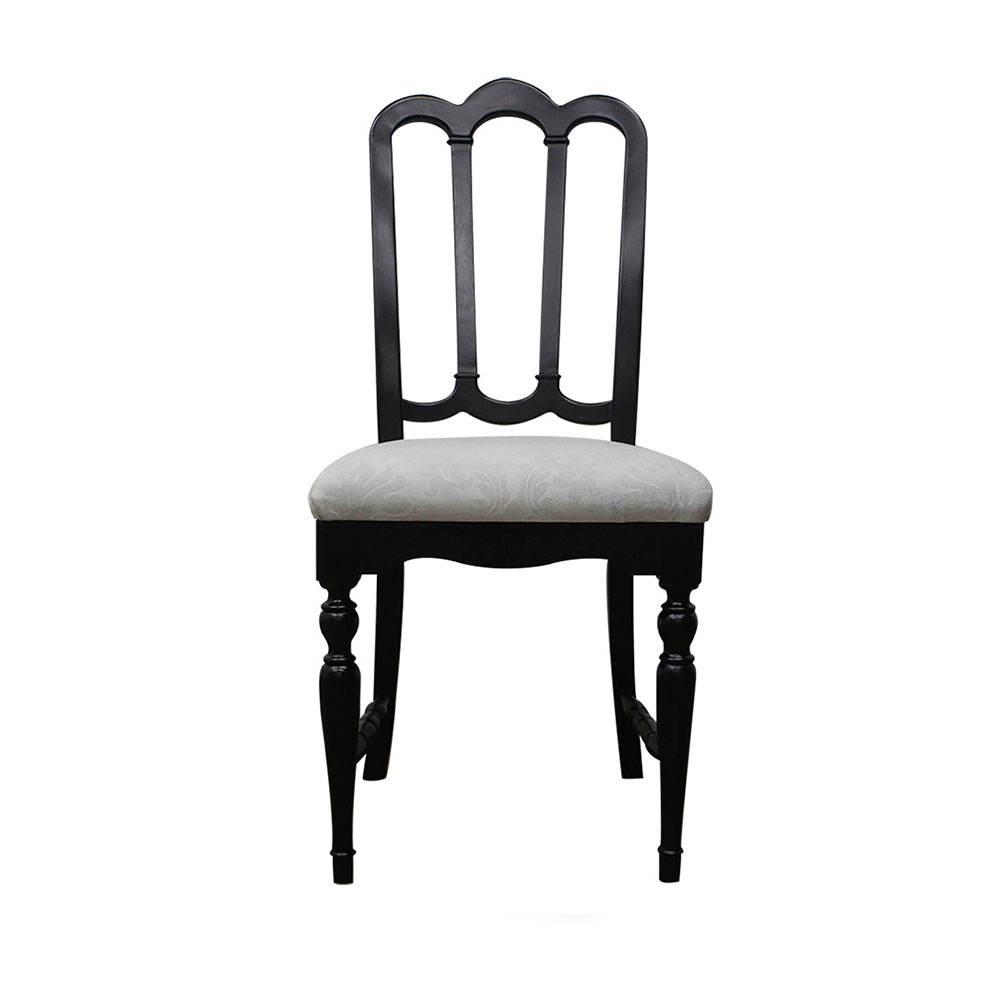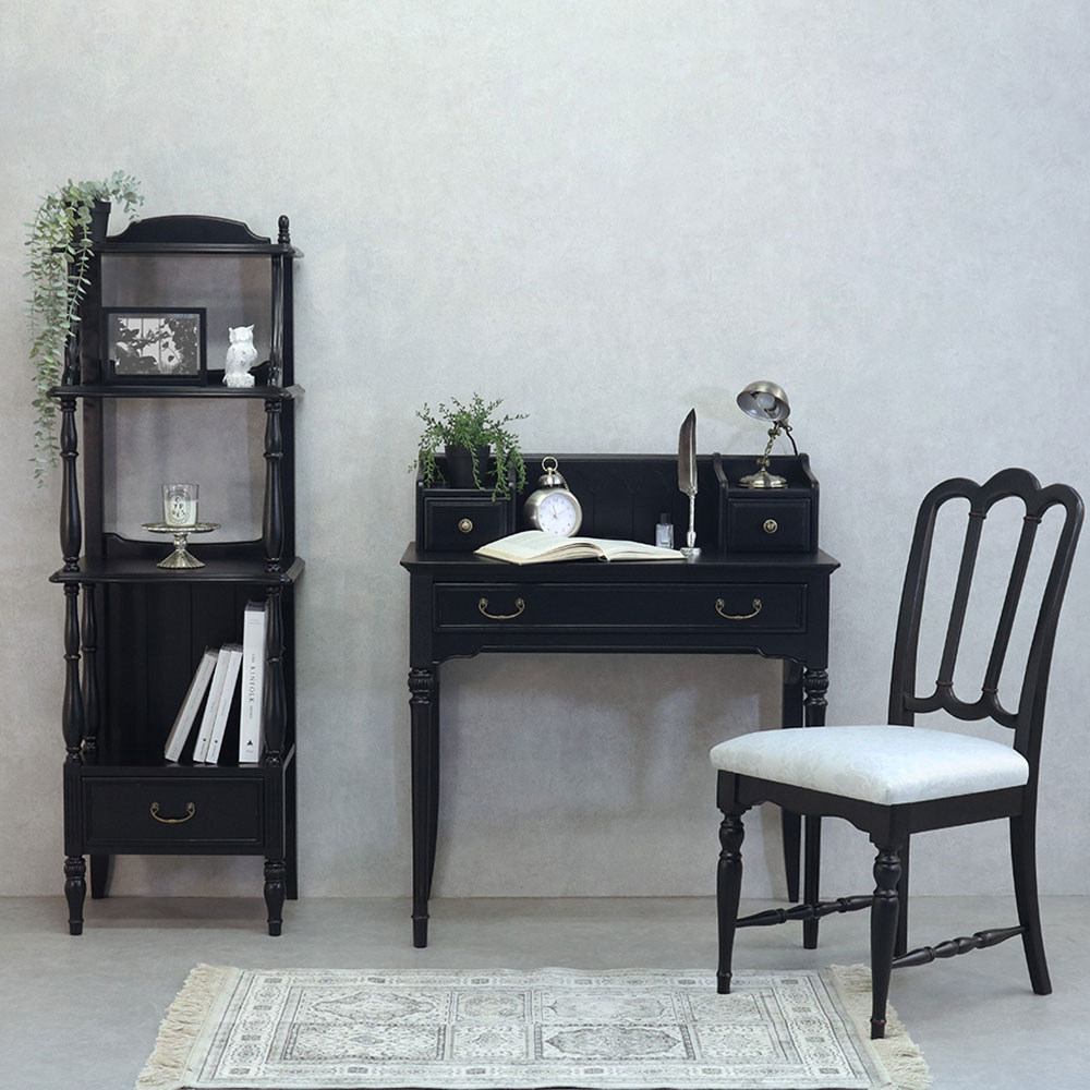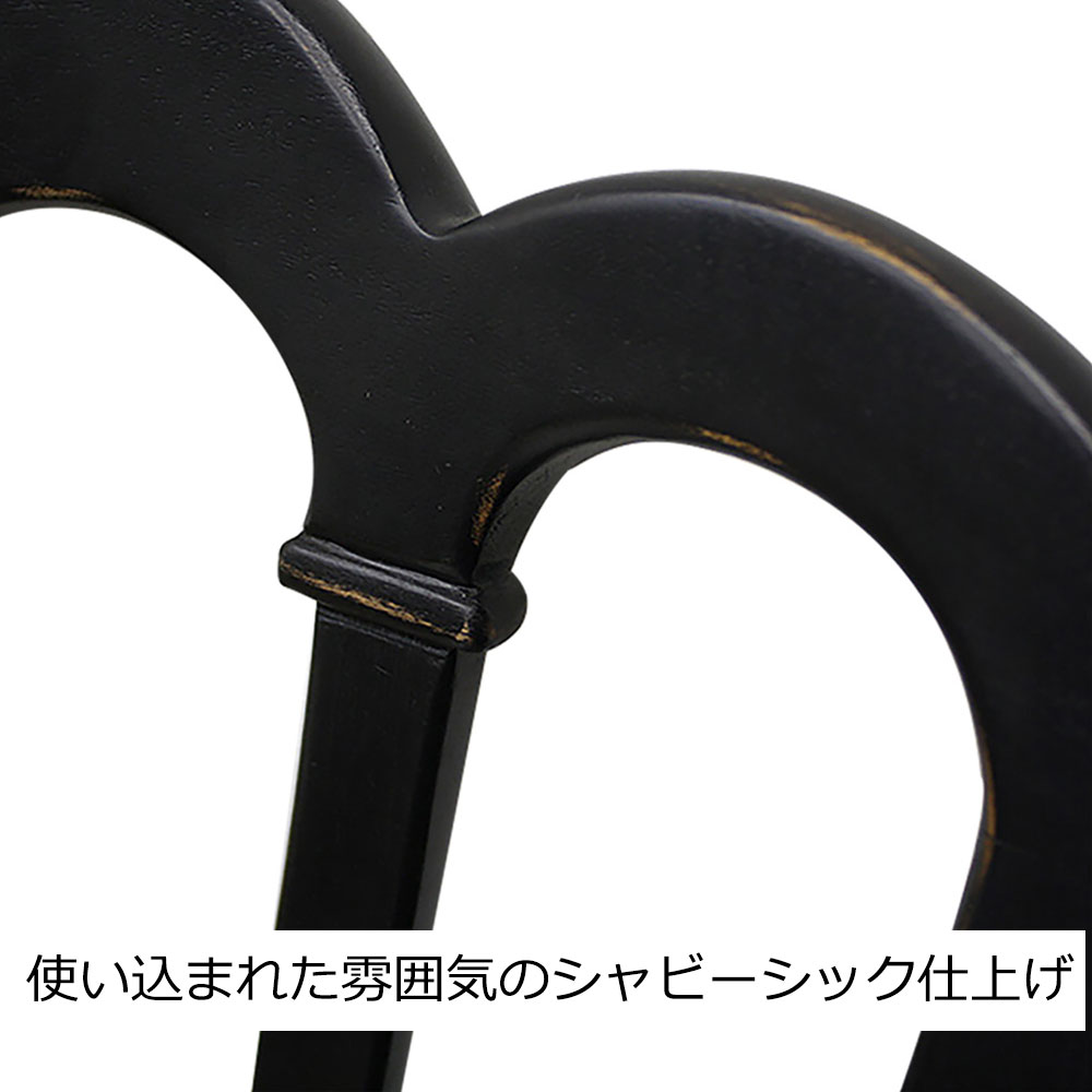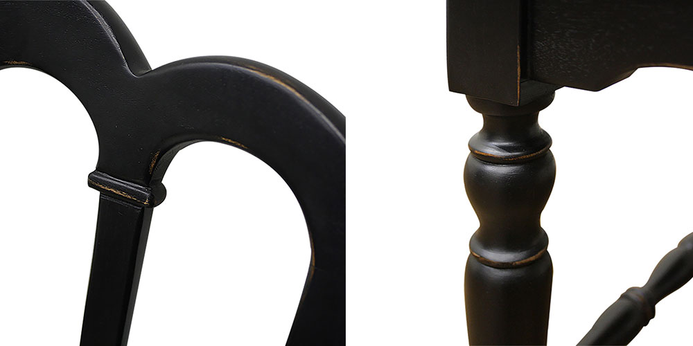 セレクトショップなどでみられる格好の良いブラックカラースタイルを、クールで大人っぽい雰囲気にレイアウトできるようにセレクトされたシリーズです、琥珀色をベースにしたアンバーブラック塗装に、使い込んだように見えるシャビー仕上げを施したプライベートルーム向けアンティーククラシカルデザインのダイニングチェアです。※画像はイメージです。
