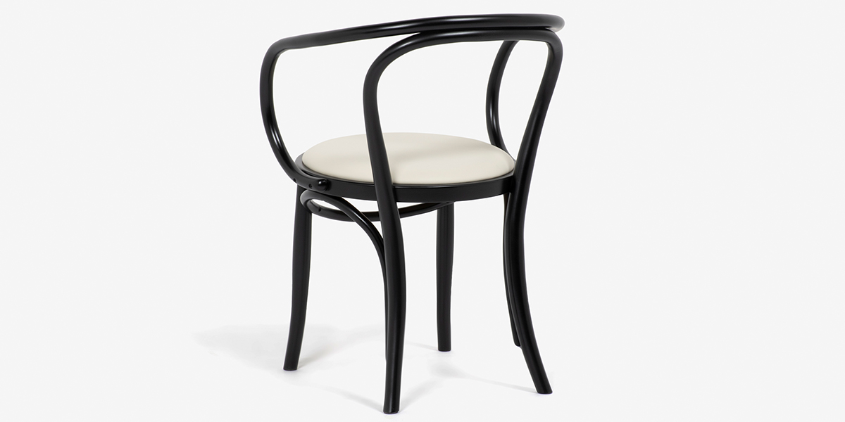 背から脚、背から肘にかけて使われた大きな曲木の美しさと肘かけでゆったりと座れる優しさ。曲線が描き出す美しいフォルムが魅力です。