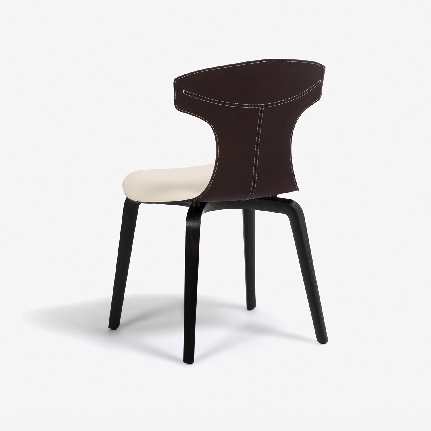 ロベルト・ラッツェローニによってデザインされた「Montera」は、軽やかなデザインと素材の魅力が特徴のダイニングチェアです。 クリーンカット加工が施された2種類のレザーを組み合わせることで、互いの長所が引き立てられ、素材の質感を際立たせています。