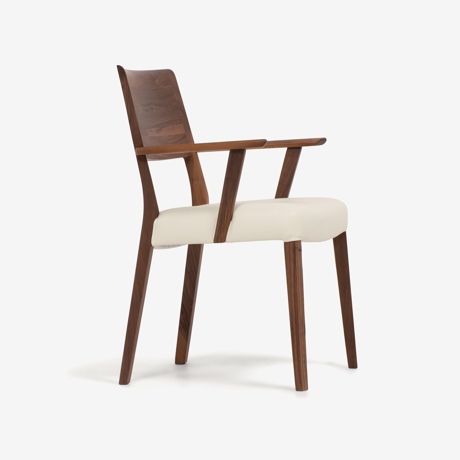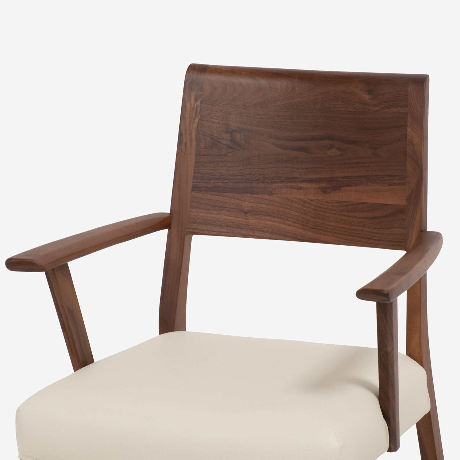 ダイニングチェア(肘付き)「シネマ Bタイプ」ウォールナット材 ウォールナット色 座面PVC