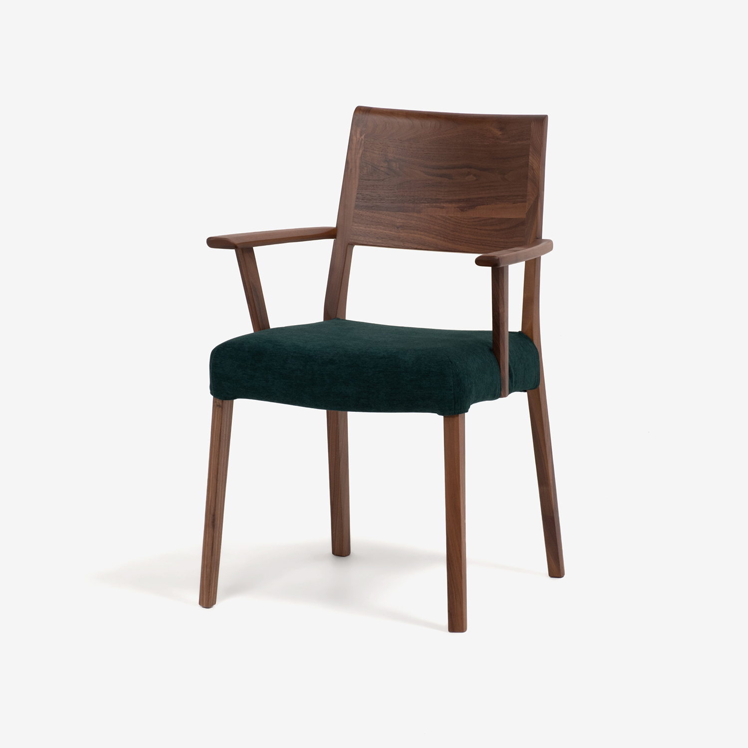 無垢集成材を使用した背もたれはウォールナット材の木目が高級感のある印象を与えてくれます。