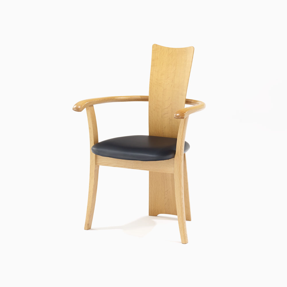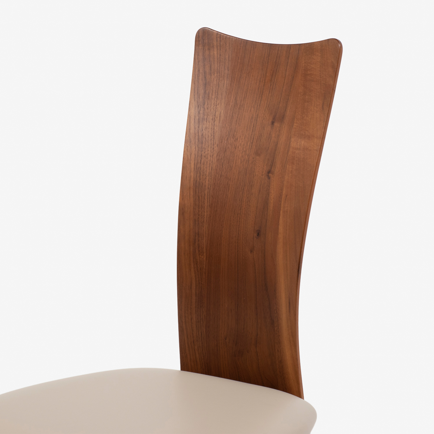 ウォールナット材の素材感を活かした美しい背もたれが目を引くデザインです。ゆるやかな曲線が背全体を支えてくれ、座り心地も快適です。