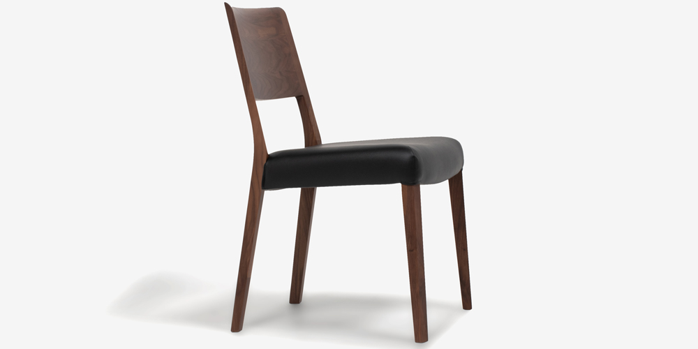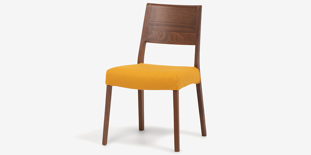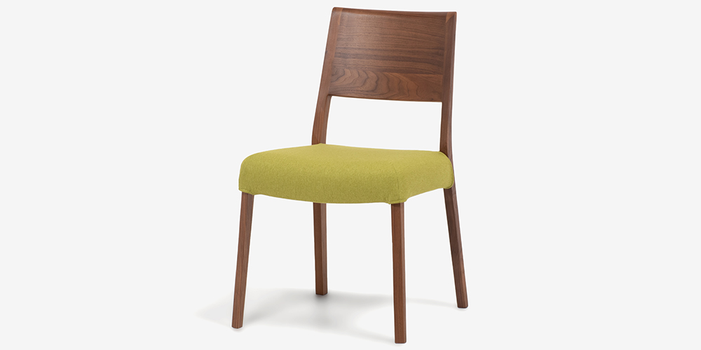 無垢集成材を使用した背もたれはウォールナット材の木目が高級感のある印象を与えてくれます。