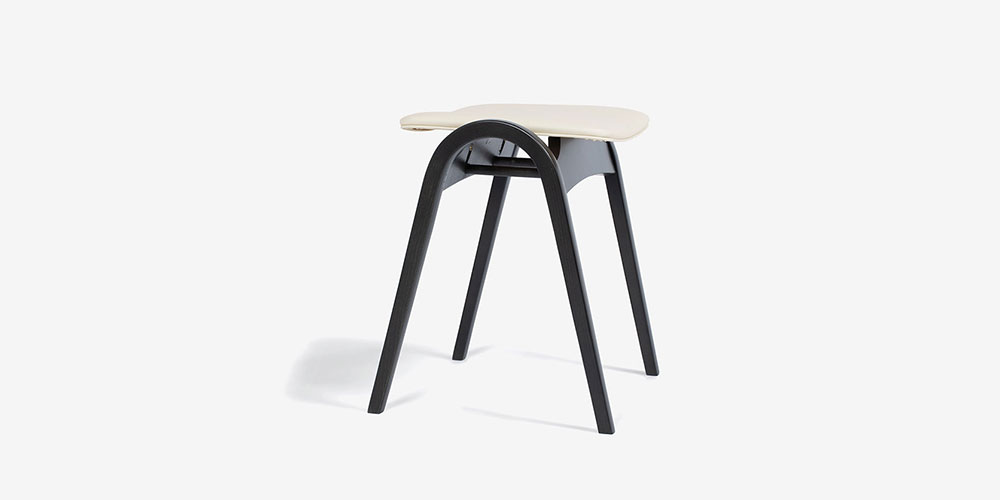 使用しない時はスタッキングして収納できることが「No.202」の最大の魅力です。背もたれがないことで重ねてテーブルの下にしまえます。狭い日本の住宅事情を踏まえたアイデアです。