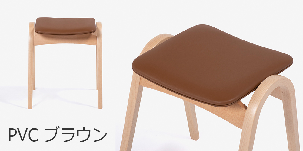 秋田木工 スツール「No.202-H」ブナ材ナチュラル色 PVCベージュ