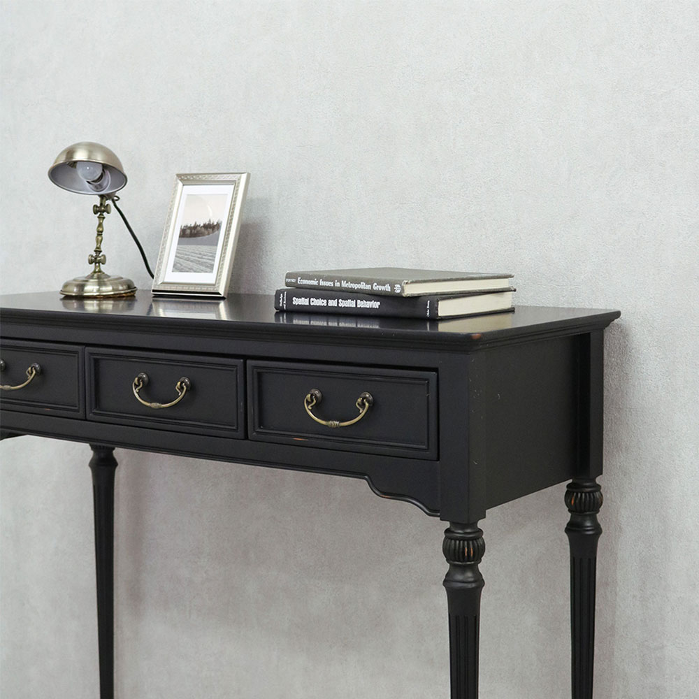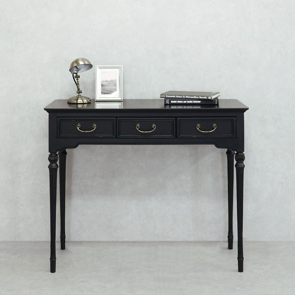 アンバーブラックを基調としたやシャビーアンティークシリーズのコンソール「ノワール」。シンプルなデザインの中にクラシックなテイストを加え、エレガントで大人な空間を演出します。電話台や花台など様々な使い方が可能です。