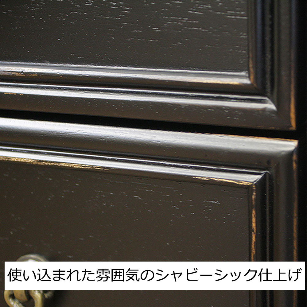 手彫り彫刻や使い込んだ雰囲気のあるシャビー仕上げが、アンティークのような風合いを感じさせます。