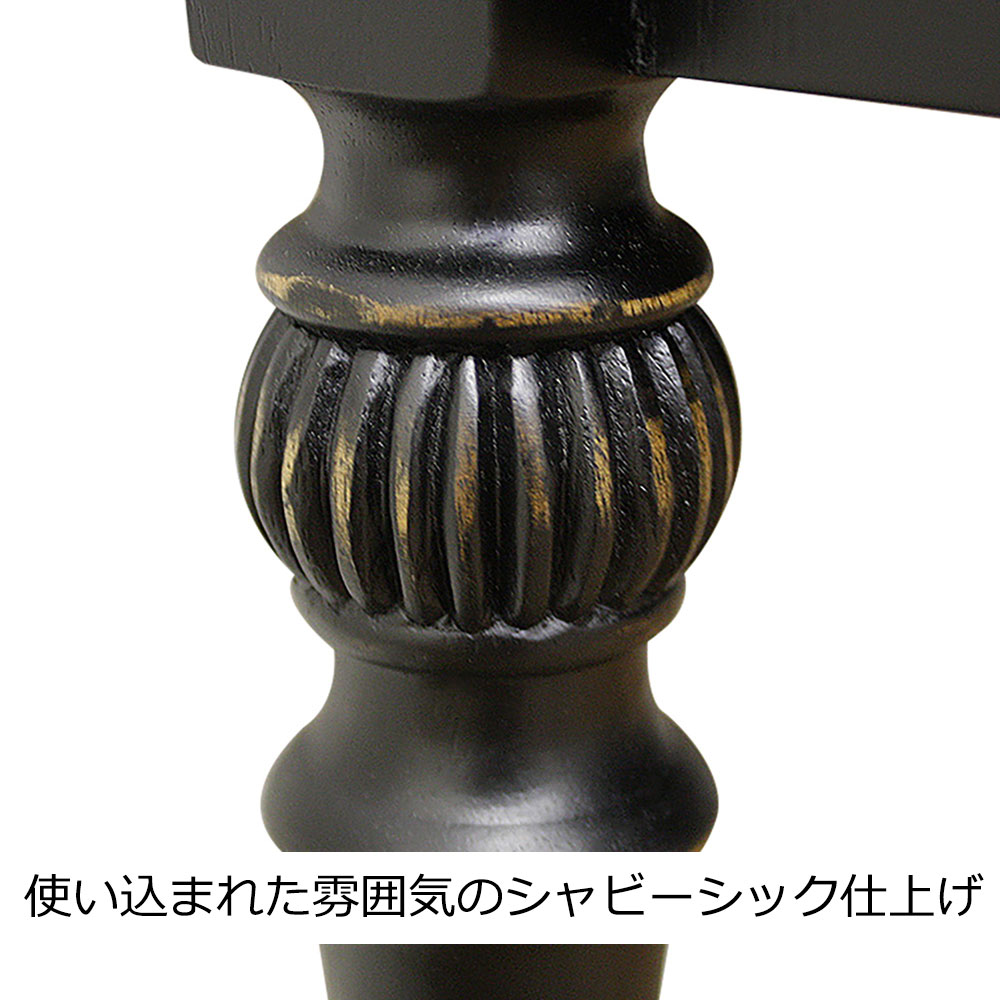 手彫り彫刻や使い込んだ雰囲気のあるシャビー仕上げが、アンティークのような風合いを感じさせます。