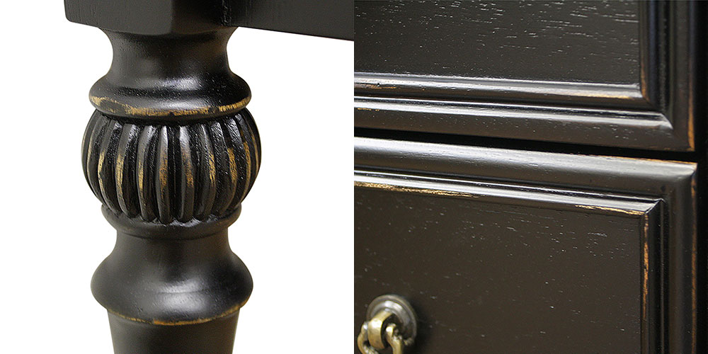 アンバーブラックを基調としたやシャビーアンティークシリーズのコンソール「ノワール」。シンプルなデザインの中にクラシックなテイストを加え、エレガントで大人な空間を演出します。電話台や花台など様々な使い方が可能です。