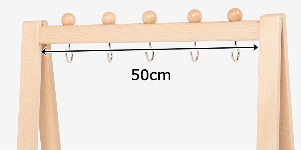 コンパクト設計ながらハンガーを掛けることのできる幅は約50cm確保。寝室や来客時に玄関での使用にも程よいサイズ感です。