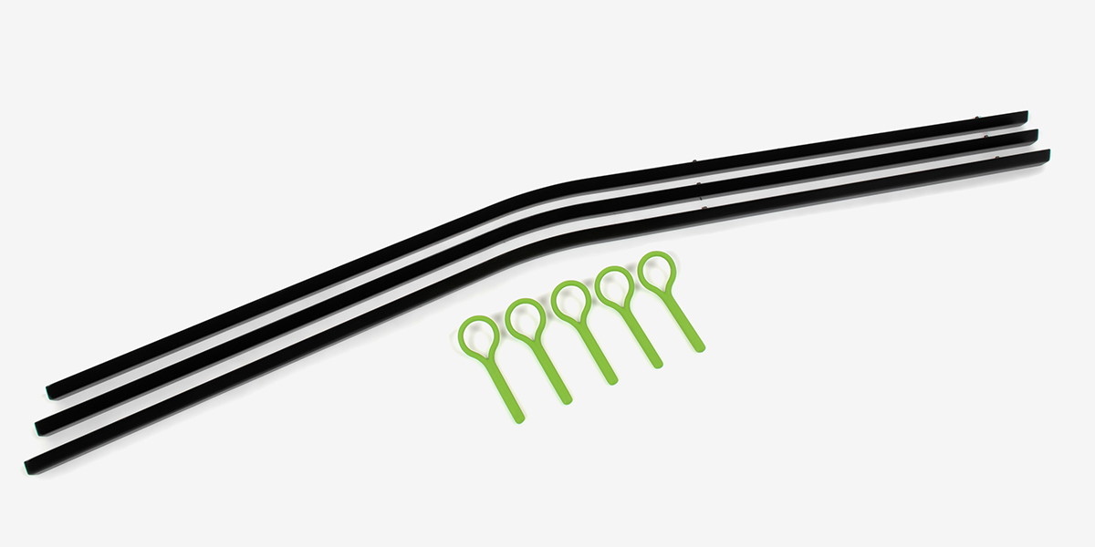 フックは1つ1つお好みの位置に取付け可能です。支柱は菱形断面の曲げ木を三本束ねた構造となっており、テコの原理で緊結力を働かせているフックを取り外すと1本1本に容易に分解・コンパクト化できることも大きな特徴です。
