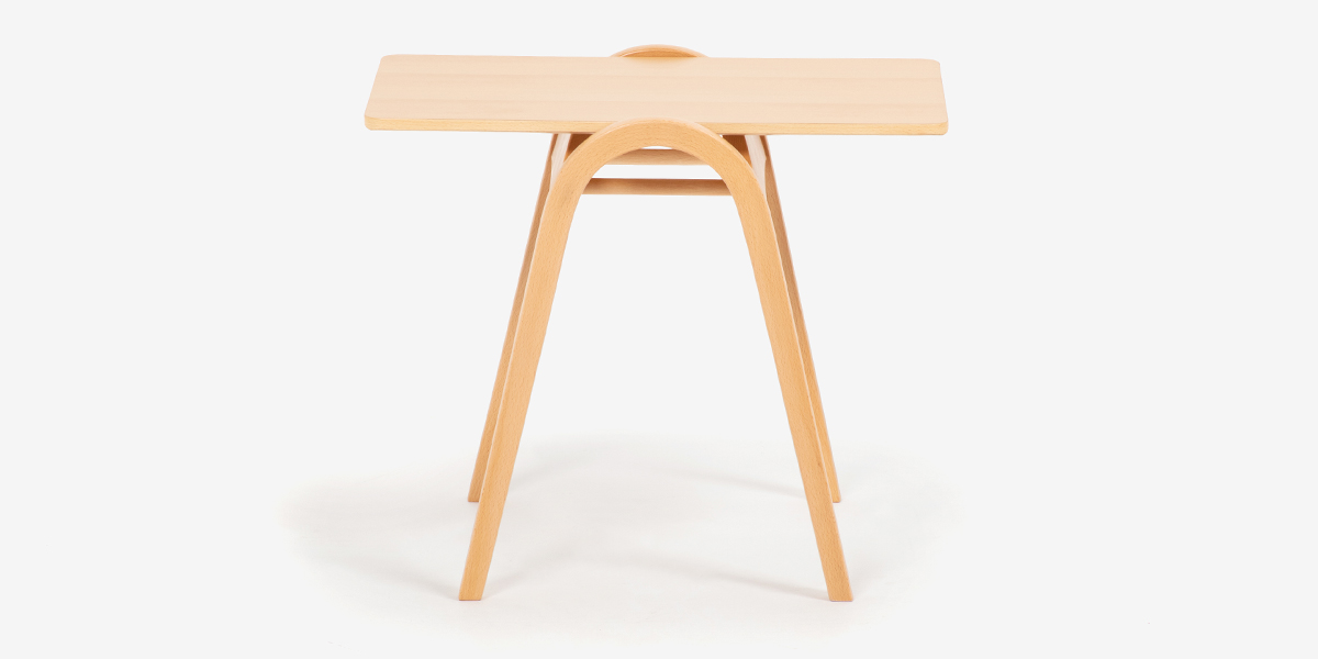 省スペース化を実現するためスタッキングが可能になっています。 曲木手法をよく理解し、適したブナ材を使うことで強度が高く弾力性もあり、曲線がとても美しいサイドテーブルです。