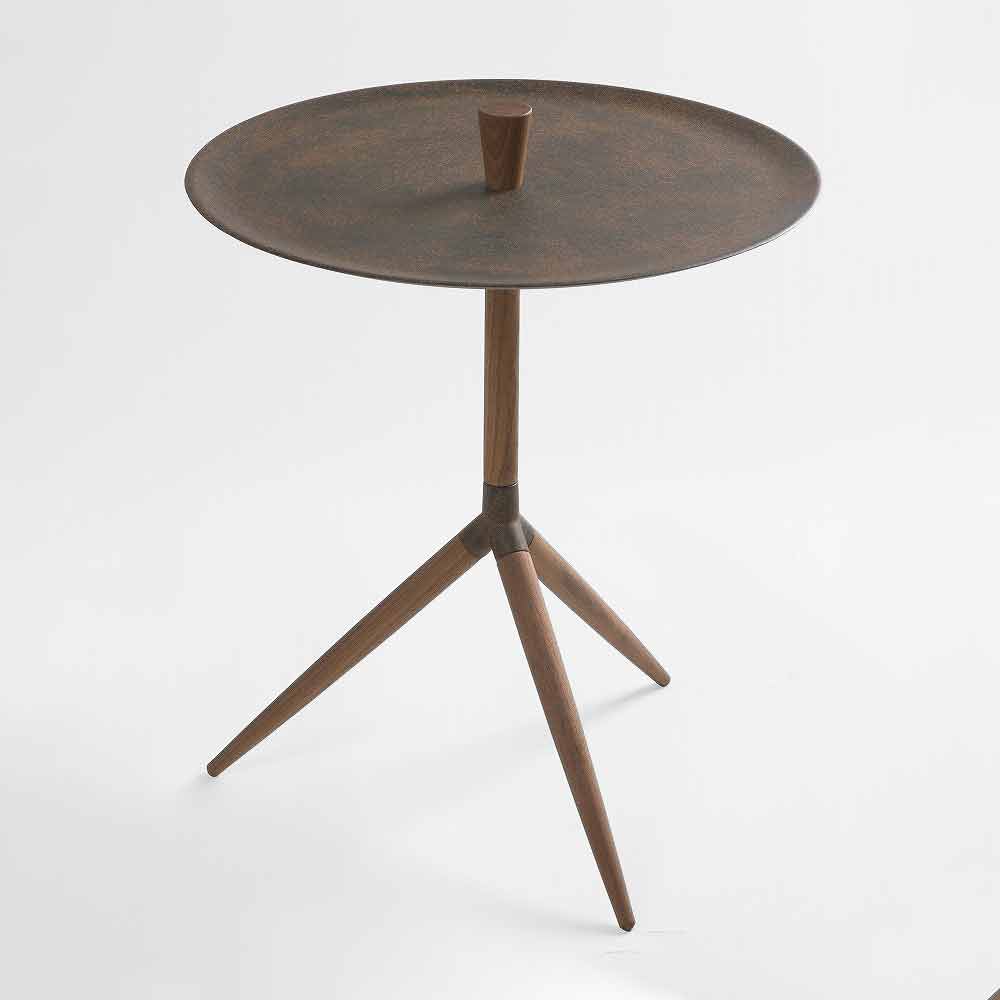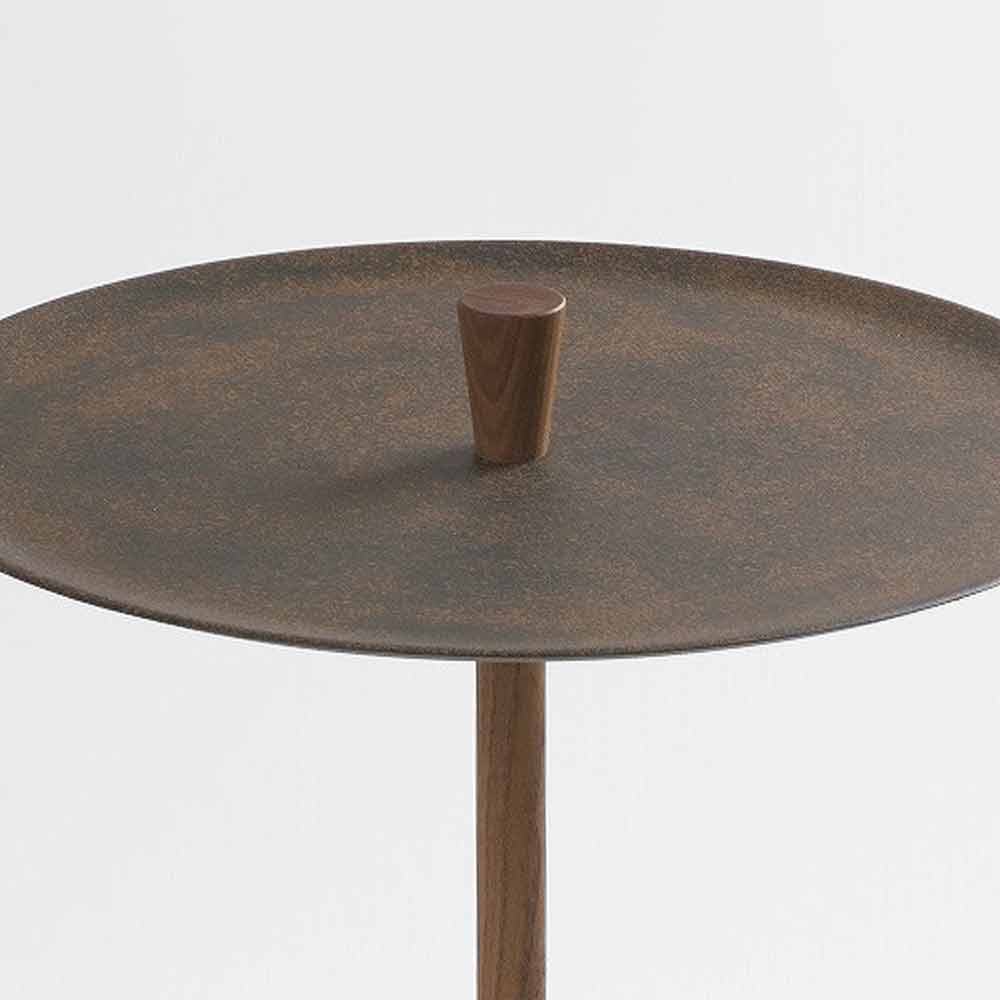 サイドテーブル 丸「HK+01」ウォールナット材 青錆色