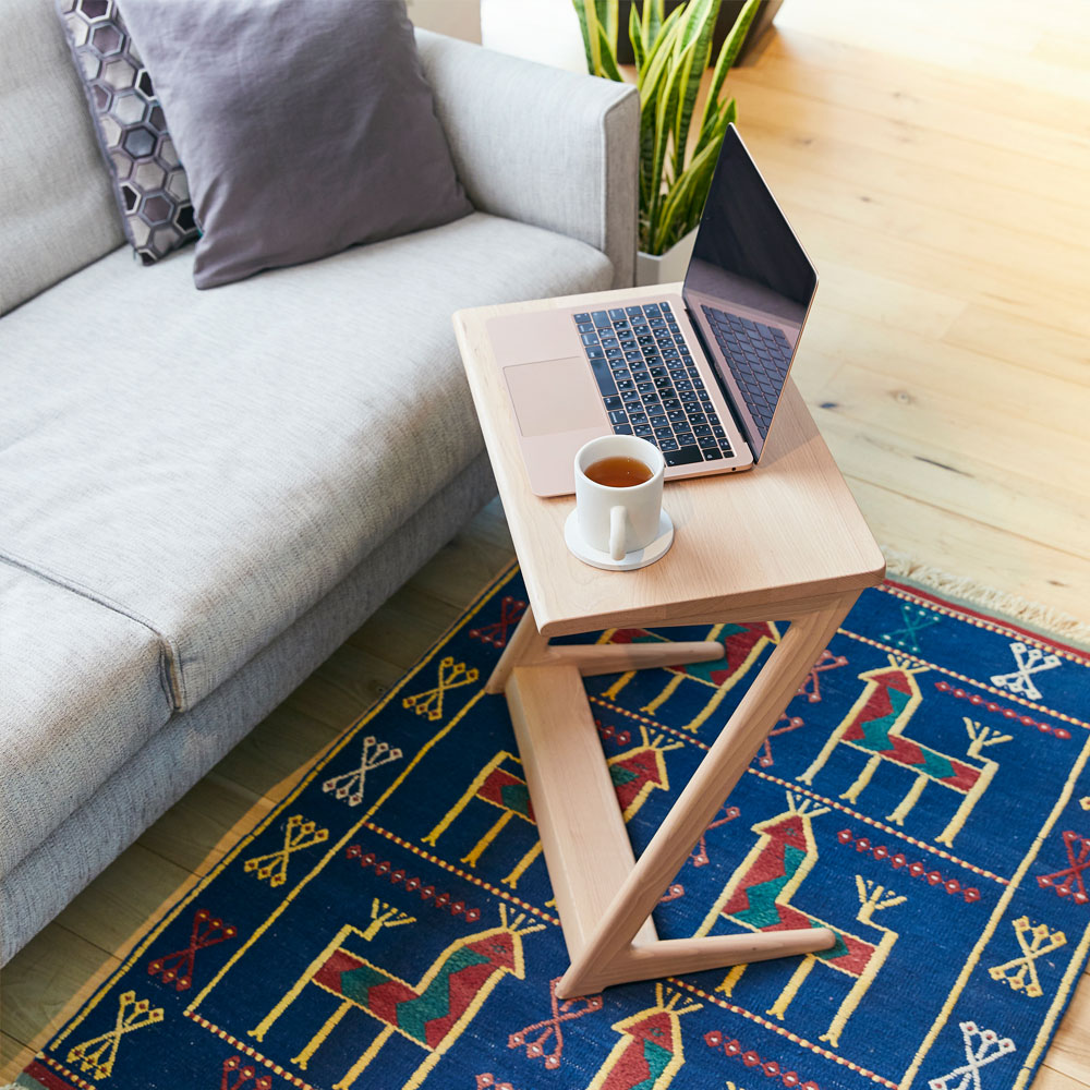 Z型のデザインはソファの脚元に差し込みやすく、向きを問わず手元まで引いて使用できます。