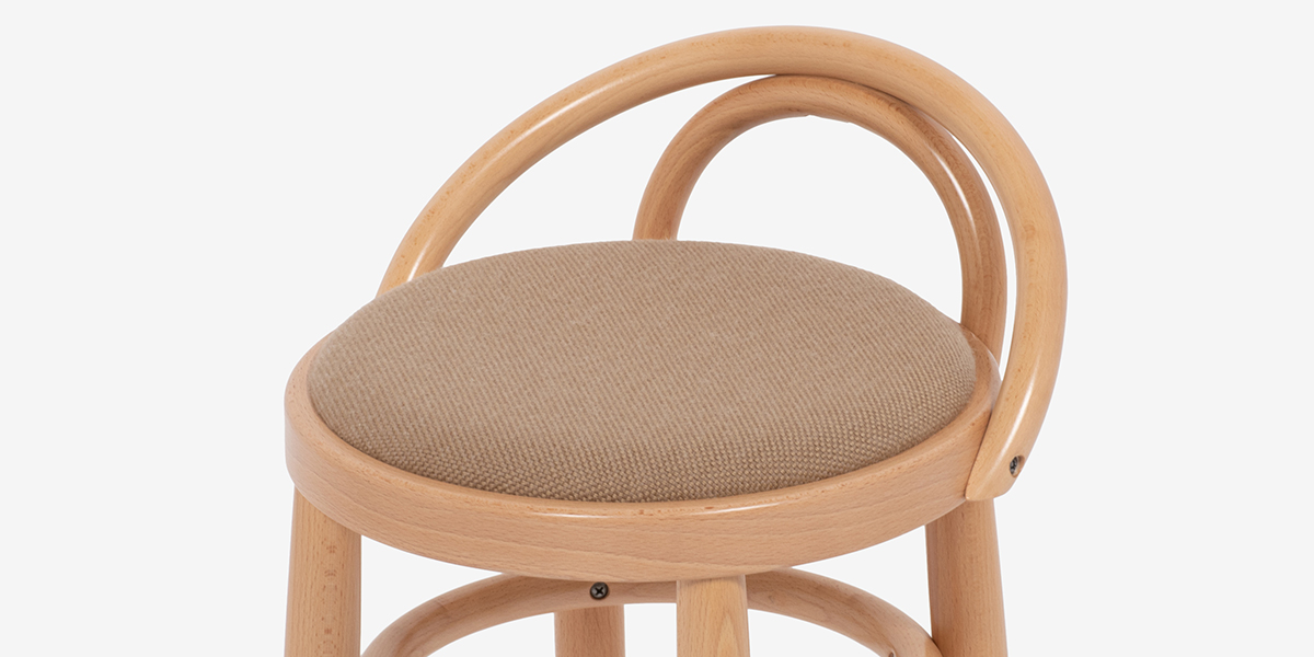 曲木の専門工房である秋田木工のカウンターチェアシリーズ。座面高は45cmはスツールとしてダイニングや玄関、ドレッサーと合わせてもお使いいただけます。ブナ材のやさしい質感が明るい印象です。