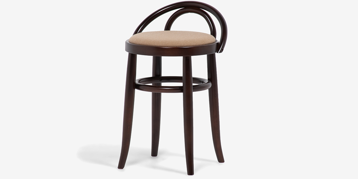 曲木の専門工房である秋田木工のカウンターチェアシリーズ。座面高は45cmはスツールとしてダイニングや玄関、ドレッサーと合わせてもお使いいただけます。あたたかみのあるウォールナット色が落ち着いた印象です。