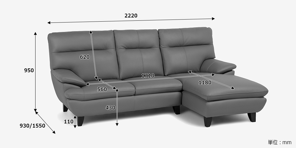 カウチソファ 向って右カウチ「ルーニー SD-344」幅222cm 半革キャメル色 #M-02