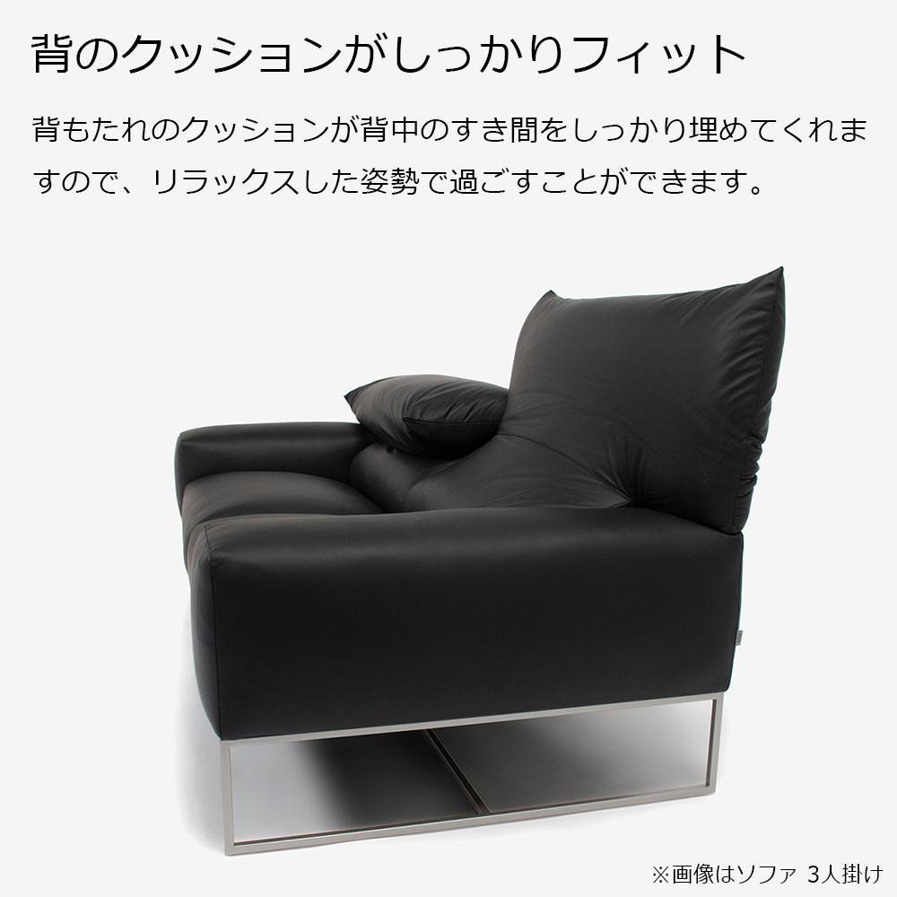 背もたれ部分を伸ばしてハイバックソファとしても使える機能的なソファです。 座面には高密度ウレタンとフェザーを使用し、体に優しくフィットする安定した座り心地です。家具工場が母体のブランドだからこそ、充実した自社設備を用いた高品質な構造が魅力です。