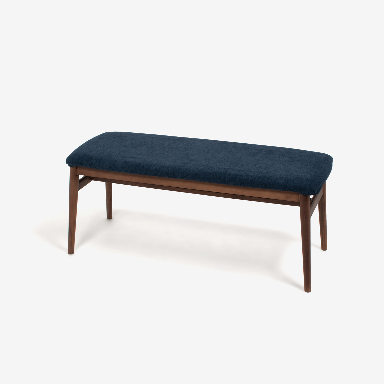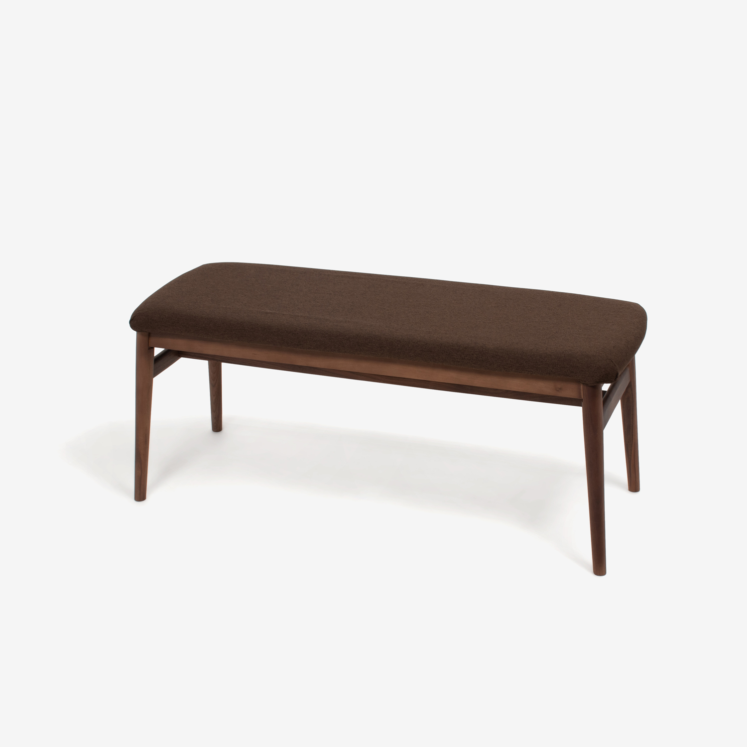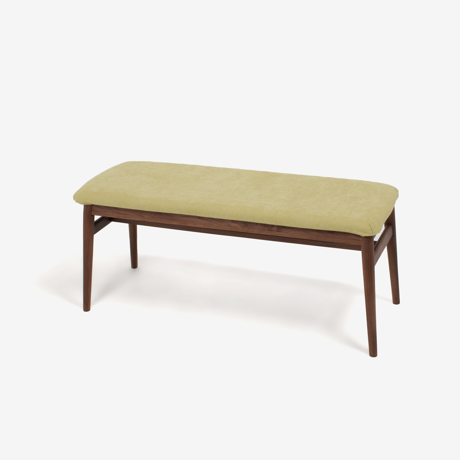 ウォールナット材の無垢材を使用した天然木のあたたかみを感じるカバーリングタイプのベンチです。座面はPVC素材のブラックとアイボリーの2色から選べ、オプションでPVCの座面の上に布カバーを取り付けることができます。
