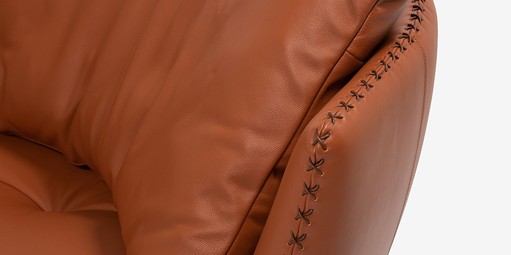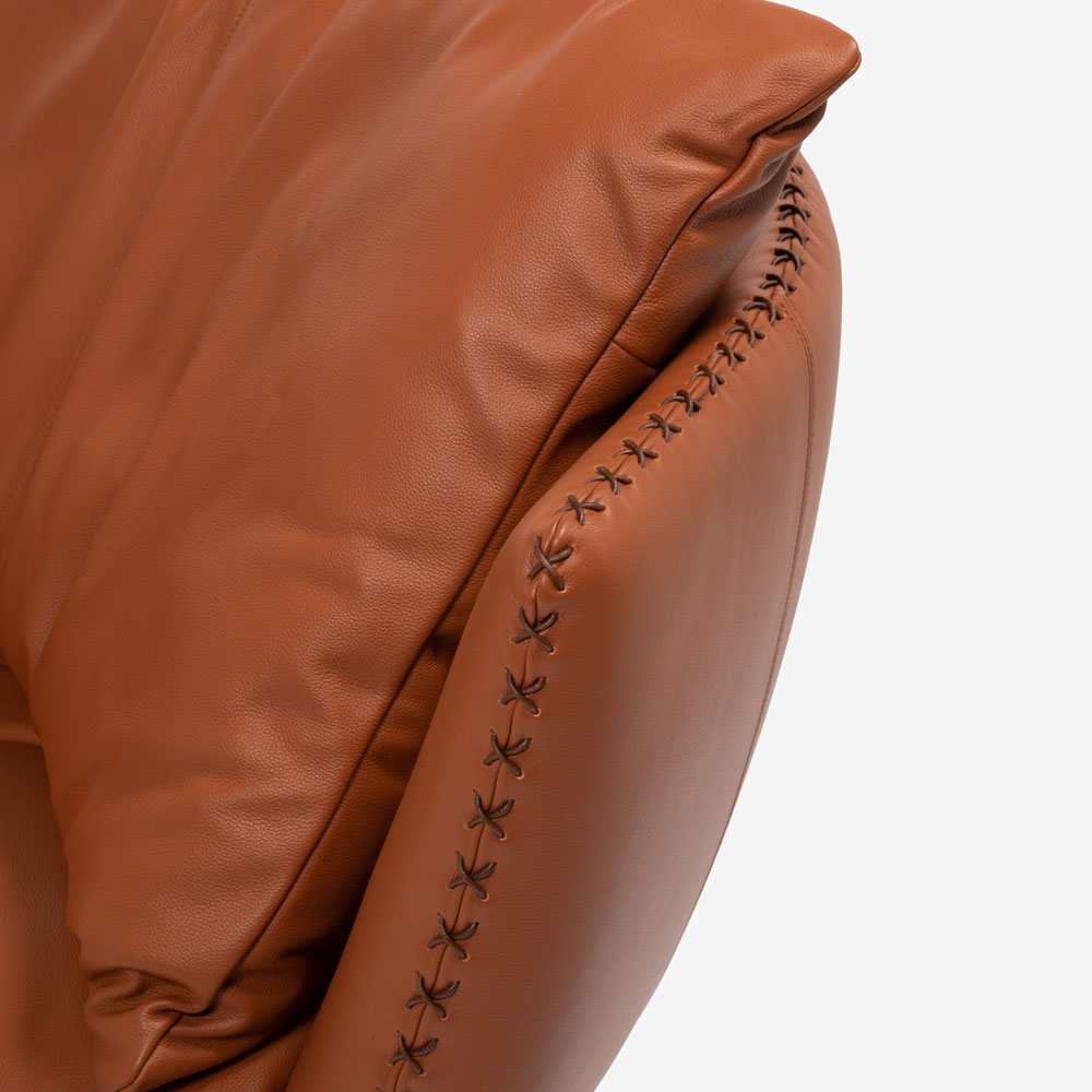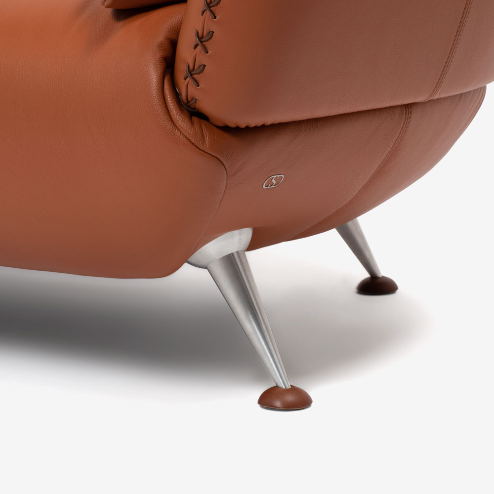 使用する革は寒冷な地方で自然放牧された雄牛の肌理の細かいものだけを使用します。丈夫でしなやかな質感を実感していただけます。座面には5種類の密度の異なるウレタンとポケットコイルを内蔵して最高の座り心地を作り出しています。