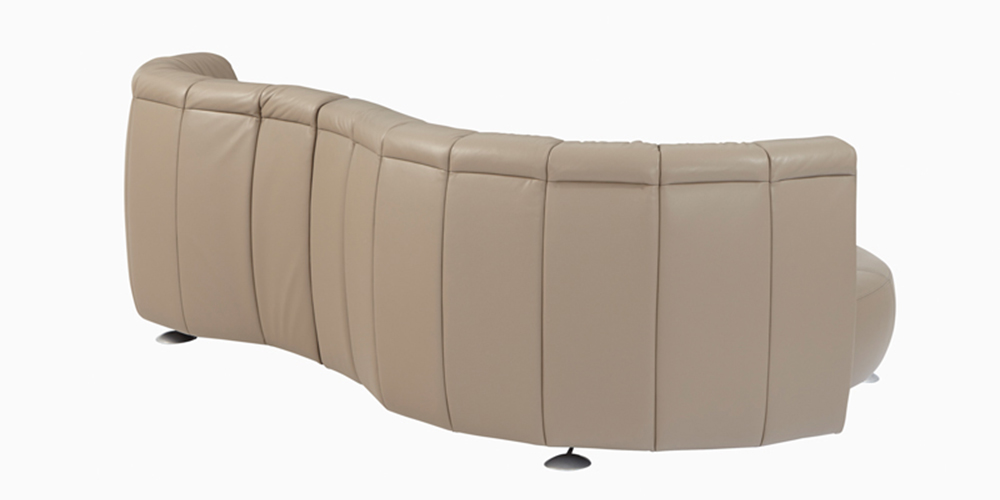 厚みがありながらもなめらかな手触りの本革を贅沢に使用し、曲線に沿った美しい張込みが印象的です。密度の異なる高品質ウレタンフォームの多層構造で快適な座り心地を実現しています。