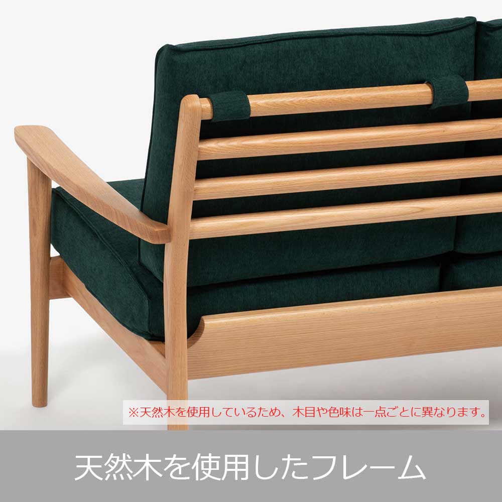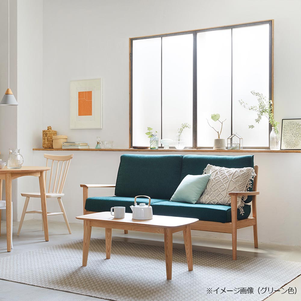 レッドオーク無垢材を贅沢に使用したコンパクトサイズのソファです。ソファ幅160cmなので限られた空間にも置きやすく、レイアウトのしやすさも魅力の一つです。空間に天然木の素材感をプラスし、明るくあたたかみのあるリビングダイニングを演出します。