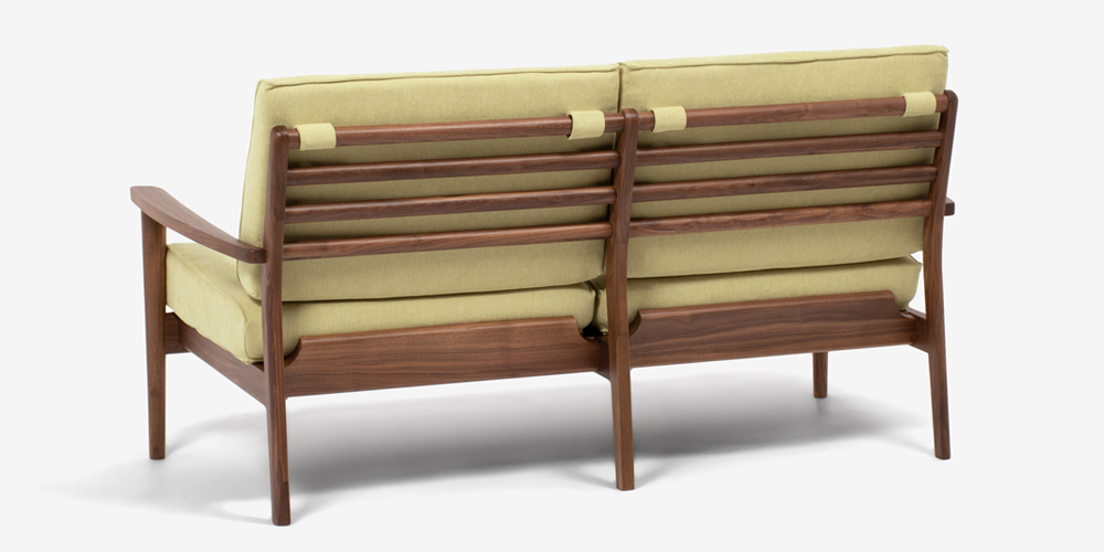ウォールナット無垢材を贅沢に使用したコンパクトサイズのソファです。ソファ幅160cmなので限られた空間にも置きやすく、レイアウトのしやすさも魅力の一つです。空間に天然木の素材感をプラスし、あたたかみのあるリビングダイニングを演出します。