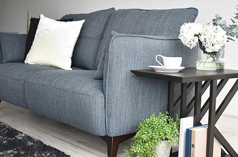 肘掛けのサイズを抑えたデザインにより、幅180cmながら、ゆったり座れるソファに仕上げました。