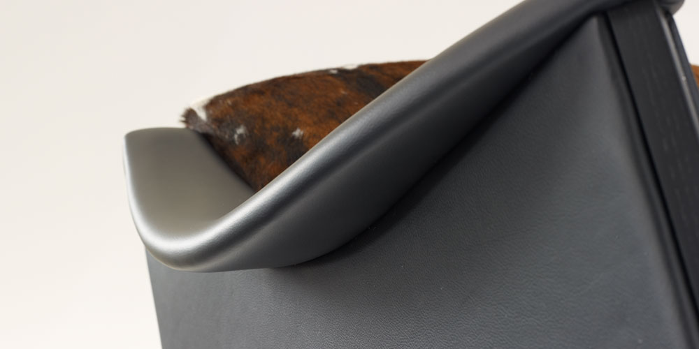 シンプルなフォルムのチェアも、座と背にカウスキンを用いることで、洗練された印象に変わります。