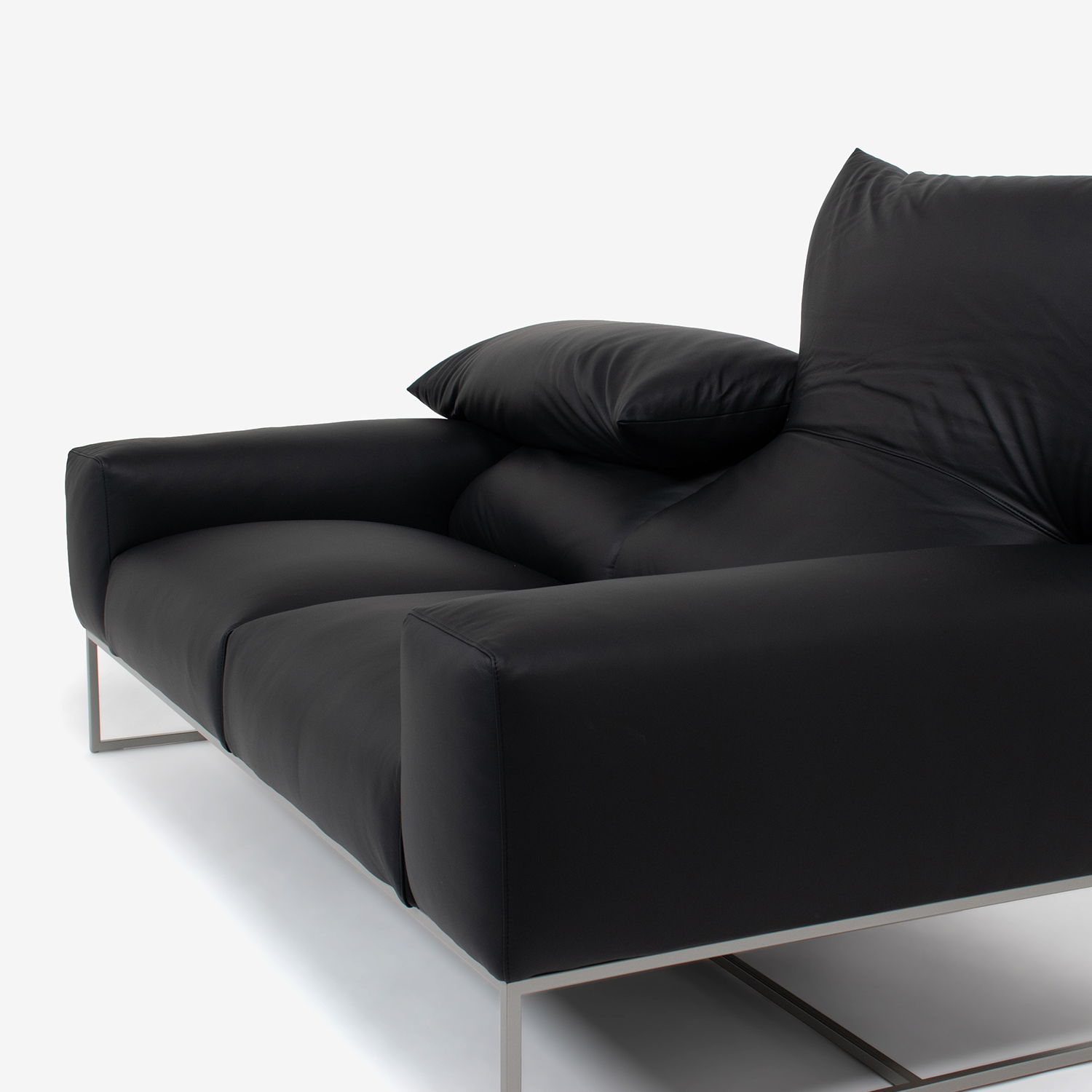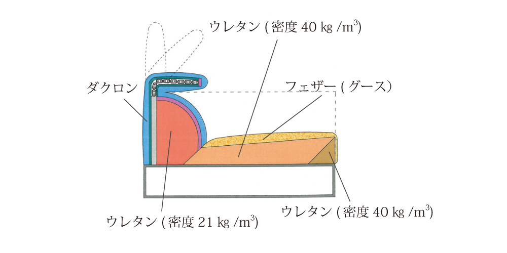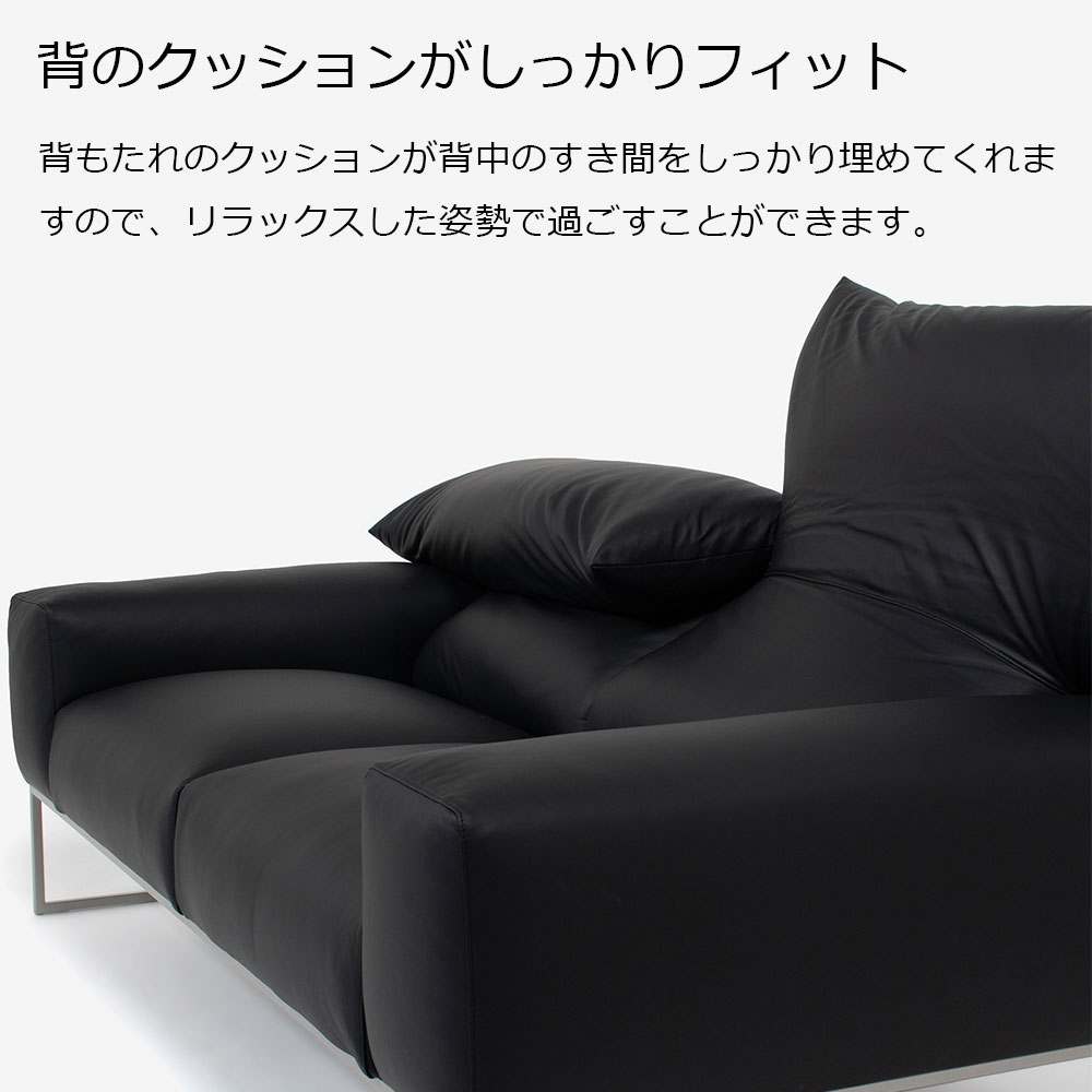 特徴的な丸みのあるデザインの背もたれを伸ばすことでハイバックにできる機能的なソファです。 座面には高密度ウレタンとフェザーを使用し、身体にやさしくフィットする座り心地です。家具工場が母体のブランドだからこそ、充実した自社設備を用いた高品質な構造が魅力です。