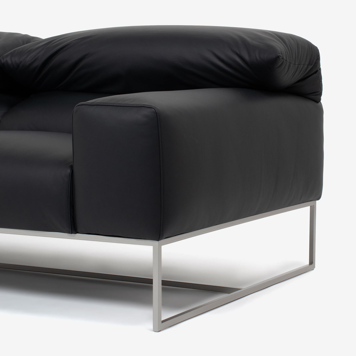 スチール製の脚部は細身のシャープなデザイン。ソファの持つモダンな雰囲気にぴったりです。