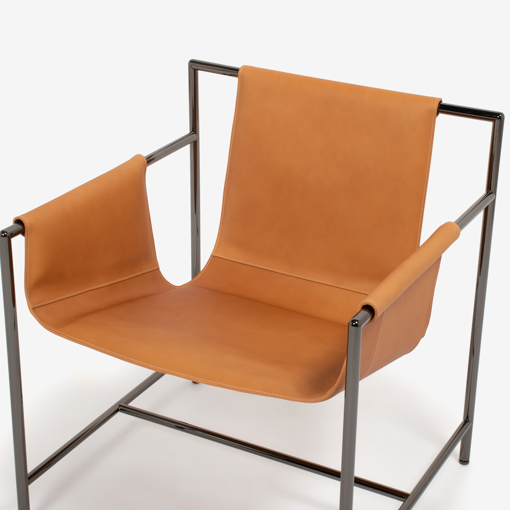 スチールフレームと上質なサドルレザーを使用し、シンプルかつデザイン性に優れた美しいアームチェア。
