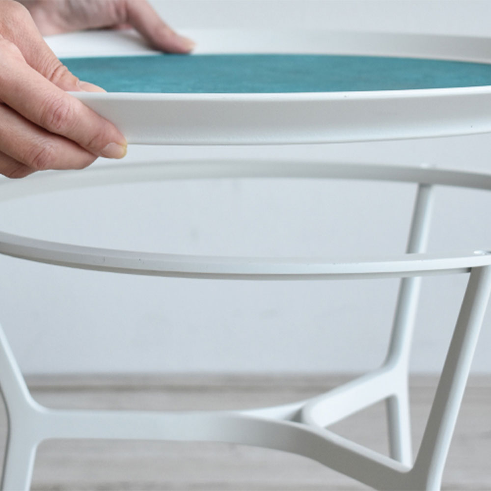 例えばキッチンでカップやポットをこのトレイに載せ、そのままリビングにある本体にのせて、お茶をいただくなど生活シーンを楽しく演出します。