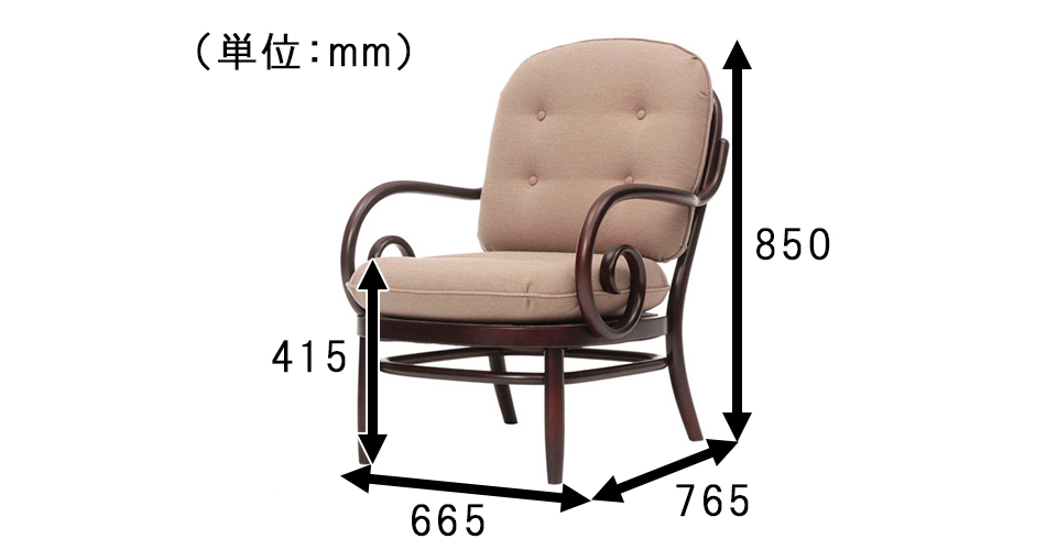 秋田木工 アームチェア 「75」 A-11 ブナ材 ウォールナット色