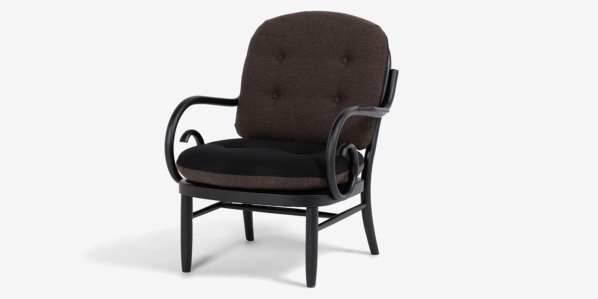 秋田木工 アームチェア「75EB」布A14/A24 ブナ材ブラック色
