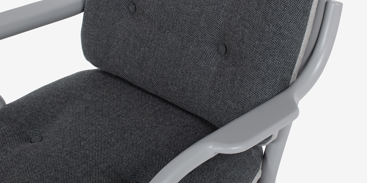 秋田木工 アームチェア「75EB」布A16/A18 木部クールグレー色