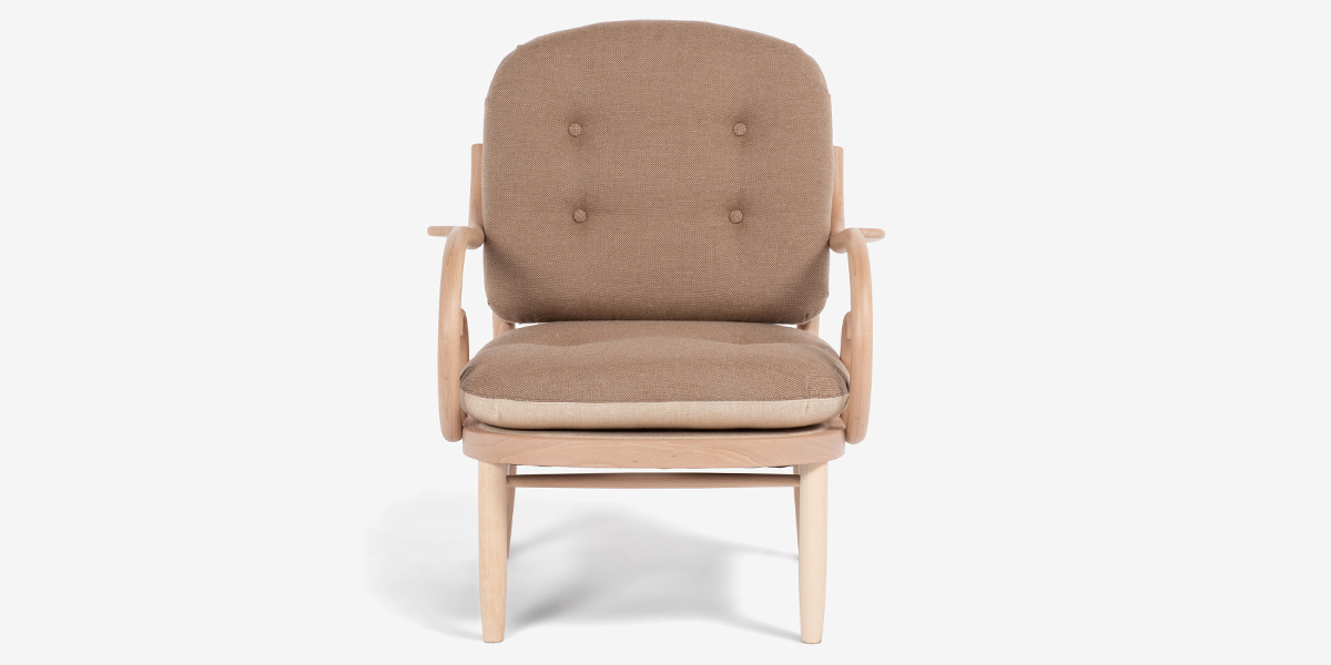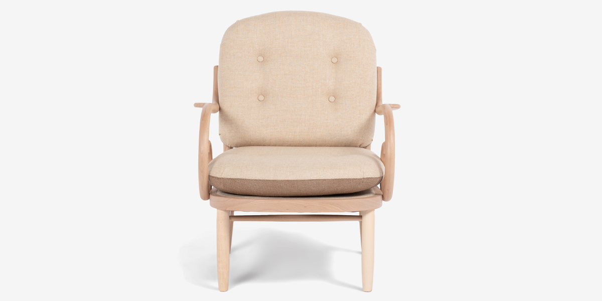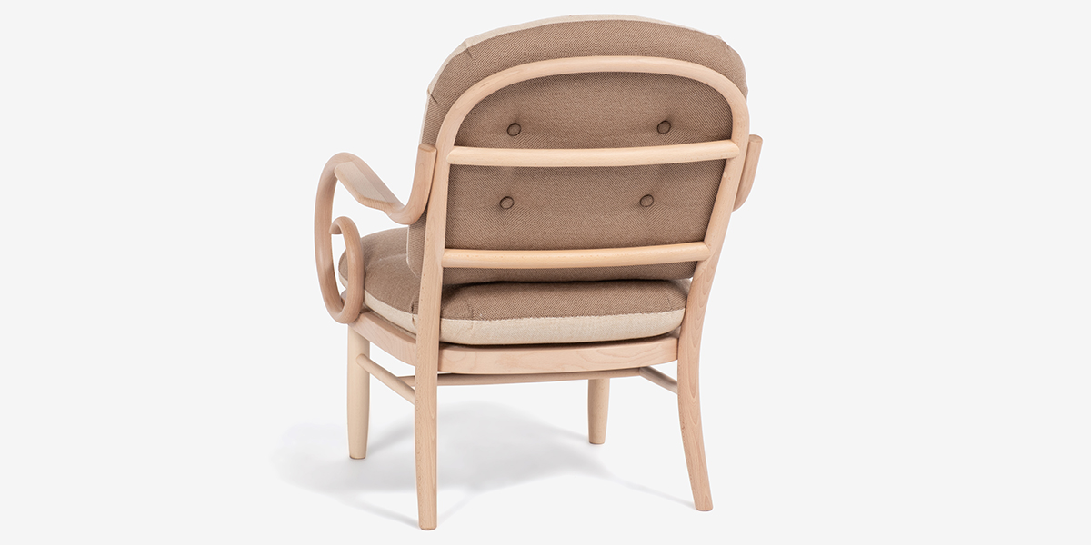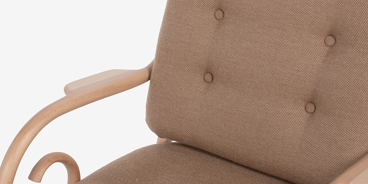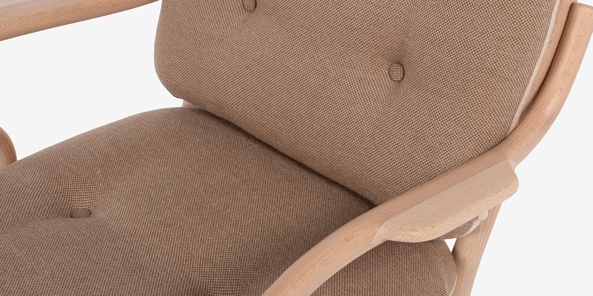 木部のパーツは一点一点、丁寧にカンナ掛け、やすり掛けで仕上げています。ブナ材を丁寧に仕上げた肘かけはいつまでも触れていたい触り心地です。