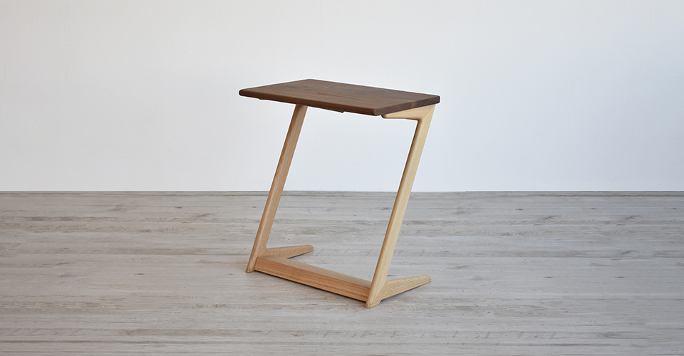 スリムでシンプルなデザインに便利な機能が備わっているサイドテーブル「エイミー」ウォールナット材Xオーク材