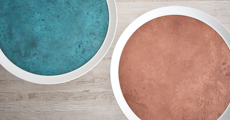 サイドテーブル 丸「HK+01」ウォールナット材 青錆色