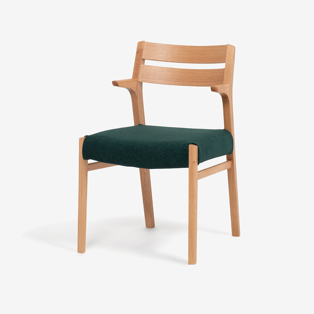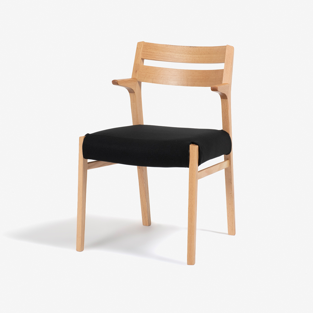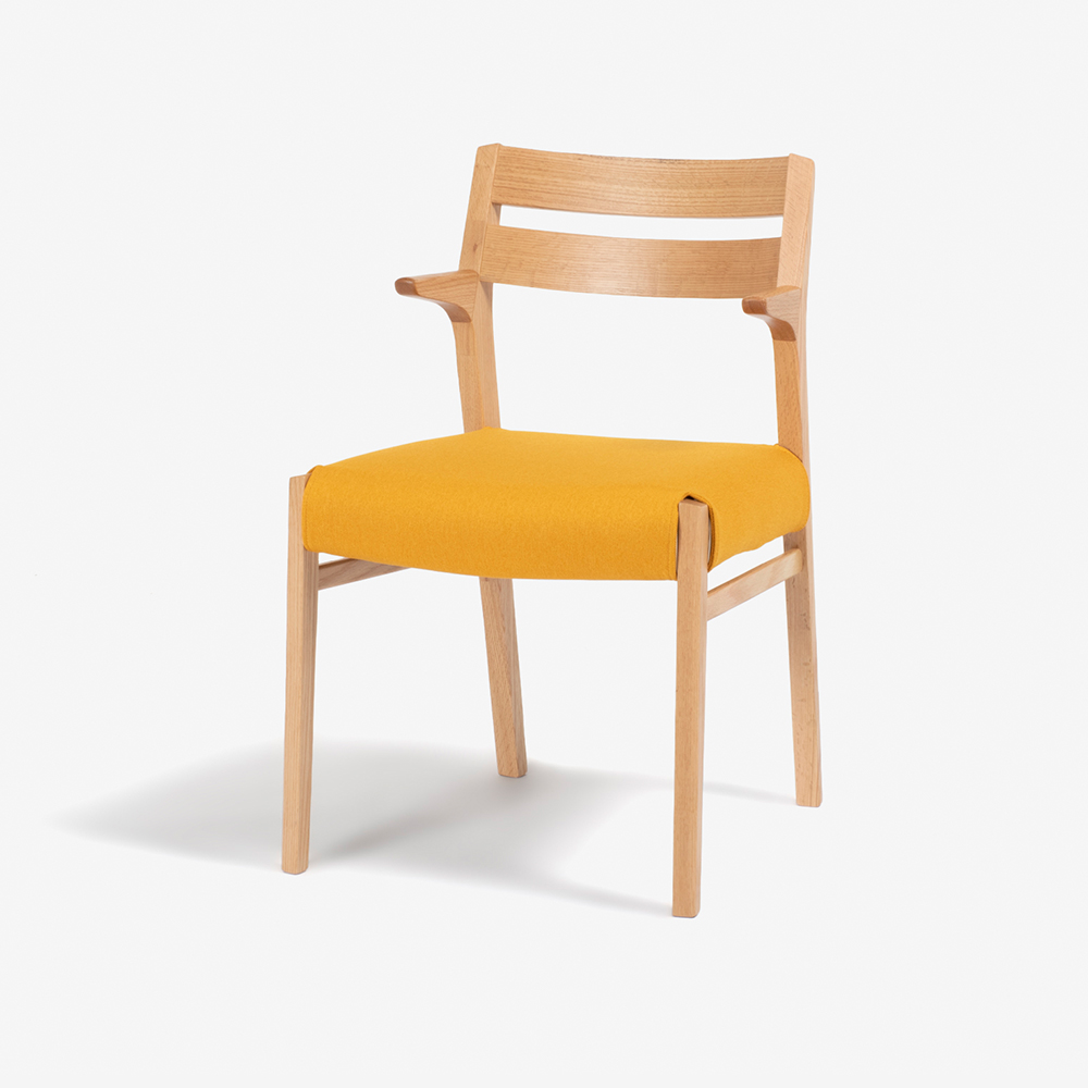 天然木の素材感を活かした、立つ・座るのしやすい半肘のダイニングチェア