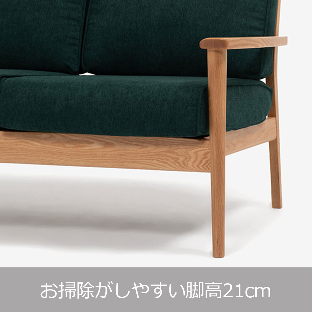 レッドオーク無垢材を贅沢に使用したコンパクトサイズのソファです。ソファ幅128.5cmなので限られた空間でも置きやすく、レイアウトのしやすさも魅力の一つです。空間に天然木の素材感をプラスし、明るくあたたかみのあるリビングダイニングを演出します。