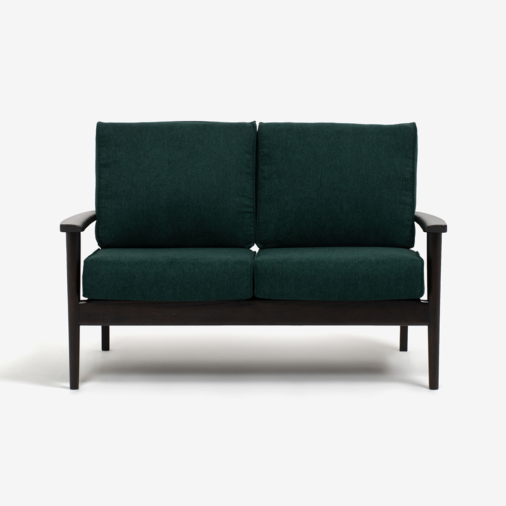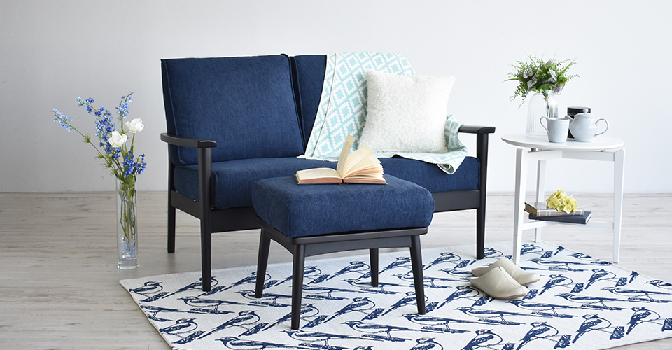 無垢材の質感が活きるコンパクトな2人掛けソファ「シネマ」