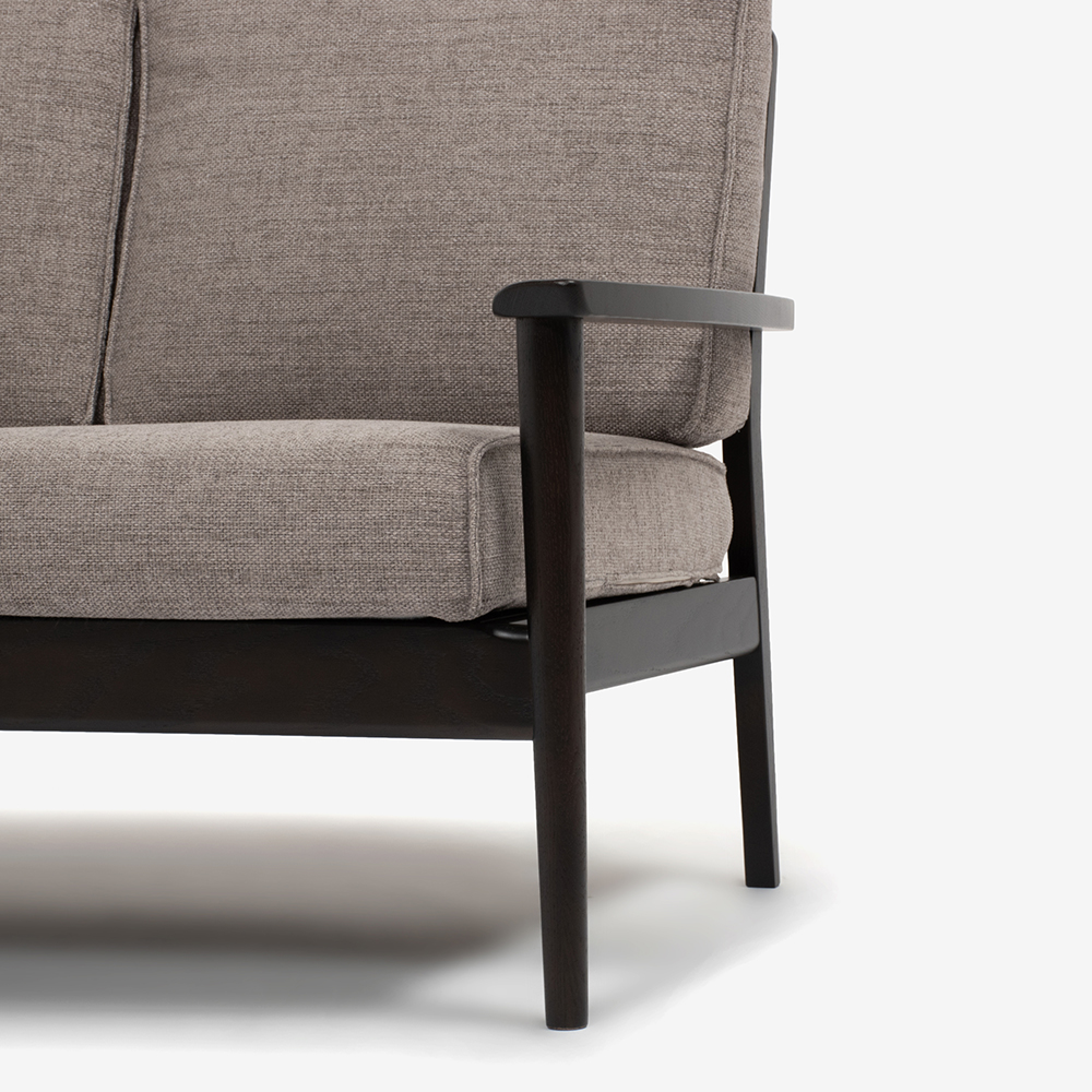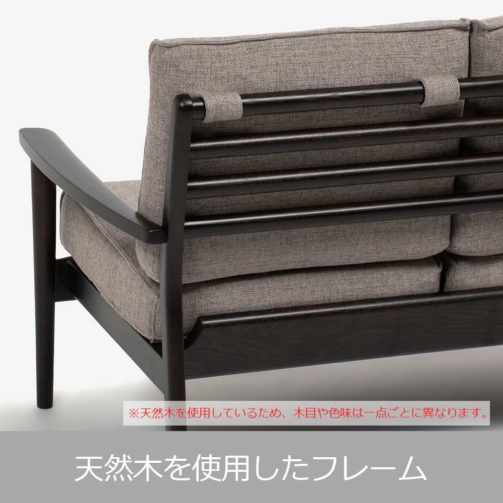 レッドオーク無垢材を贅沢に使用したコンパクトサイズのソファです。ソファ幅128.5cmなので限られた空間にも置きやすく、レイアウトのしやすさも魅力の一つです。ダークカラーは空間を引き締め、落ち着いた大人の空間を演出します。