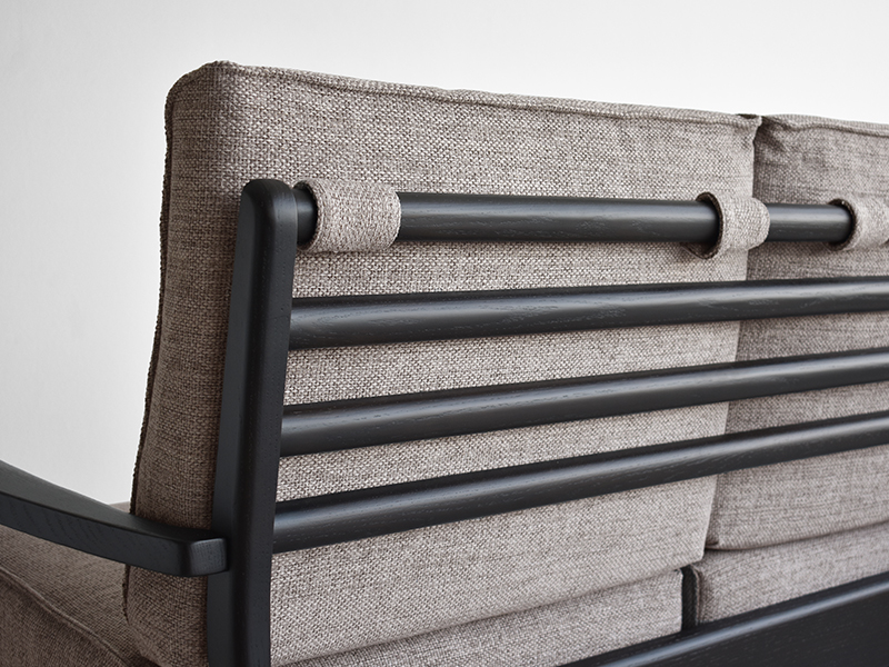 背もたれのフレームは桟状のデザイン。後ろから見た姿も軽やかな印象を与えます。