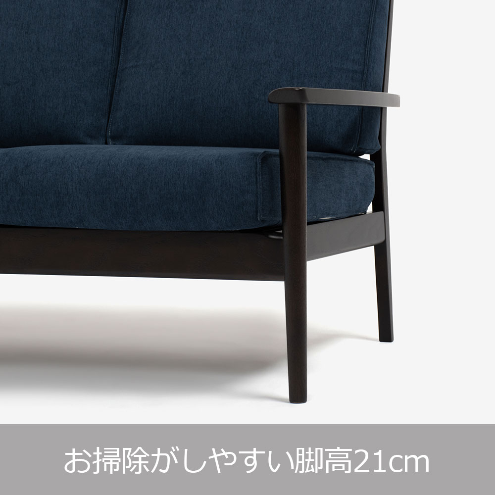 レッドオーク無垢材を贅沢に使用したコンパクトサイズのソファです。ソファ幅160cmなので限られた空間にも置きやすく、レイアウトのしやすさも魅力の一つです。木部のダークカラーは空間を引き締め、落ち着いた大人の空間を演出します。
