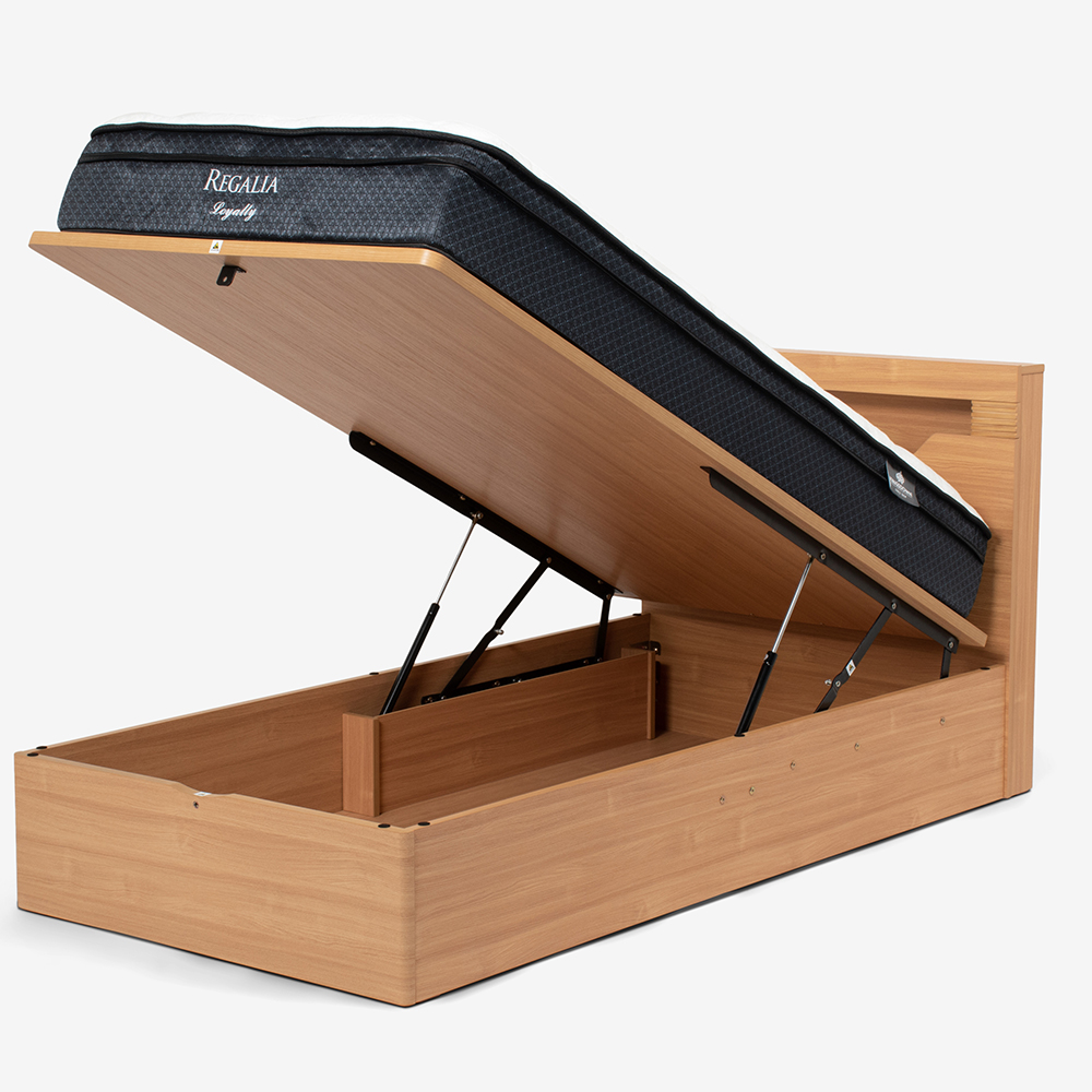 FranceBed(フランスベッド)ベッドフレーム「BG-001 TS」縦型収納(跳ね上げ式)付きタイプ アッシュグレー色 収納深さ全2サイズ