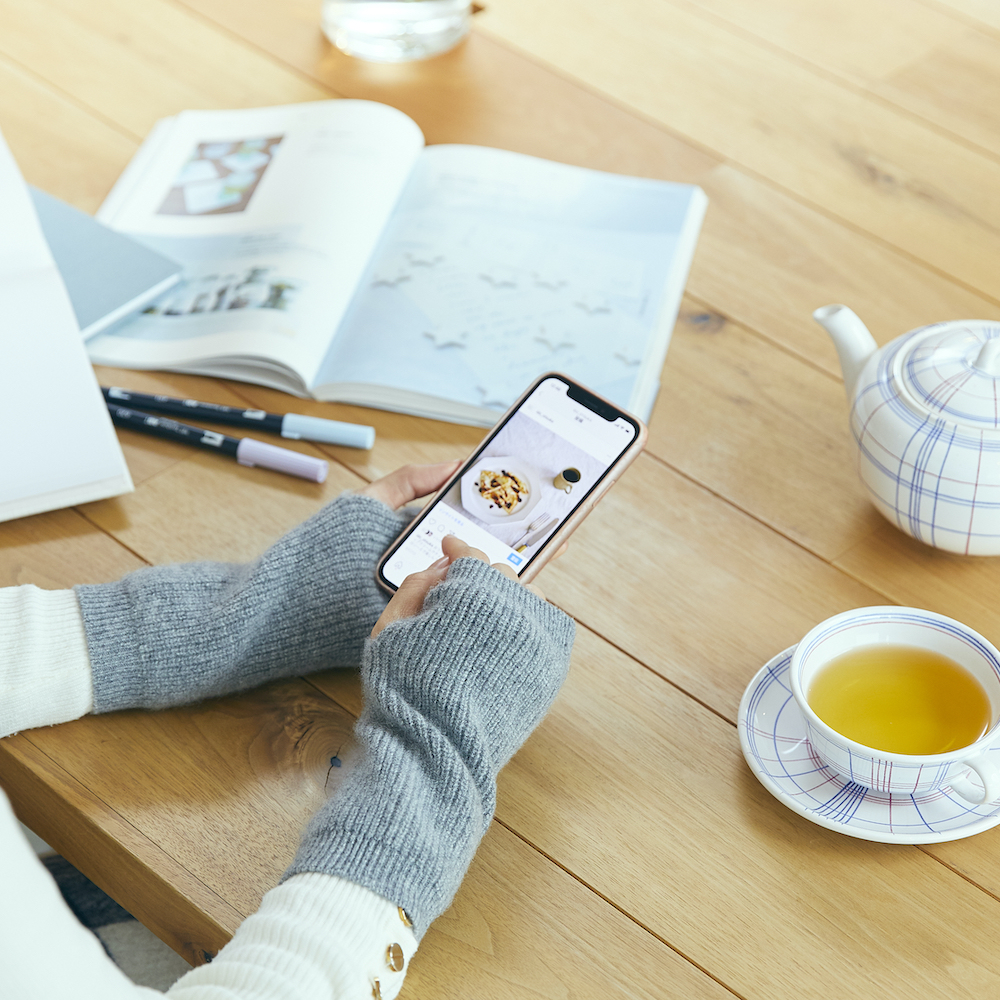 南さんが、この冬着けてみたいと目に止まったのは、最高級のホワイトカシミアを100%の「アームウォーマー」。しなやかで肌触りもよく、ぬくぬく暖かい。手首はしっかり温めつつ、親指を出せるスリットで動いてもズレにくく、指先は解放されるデザインなので、装着したままスマートフォンを操作したり、ゲームやリモコン操作も可能なのが、南さんも注目したポイント。定番のグレーやグレージュに加え、ズーム会議などにも顔映りが良く見えるレッドの3色展開。